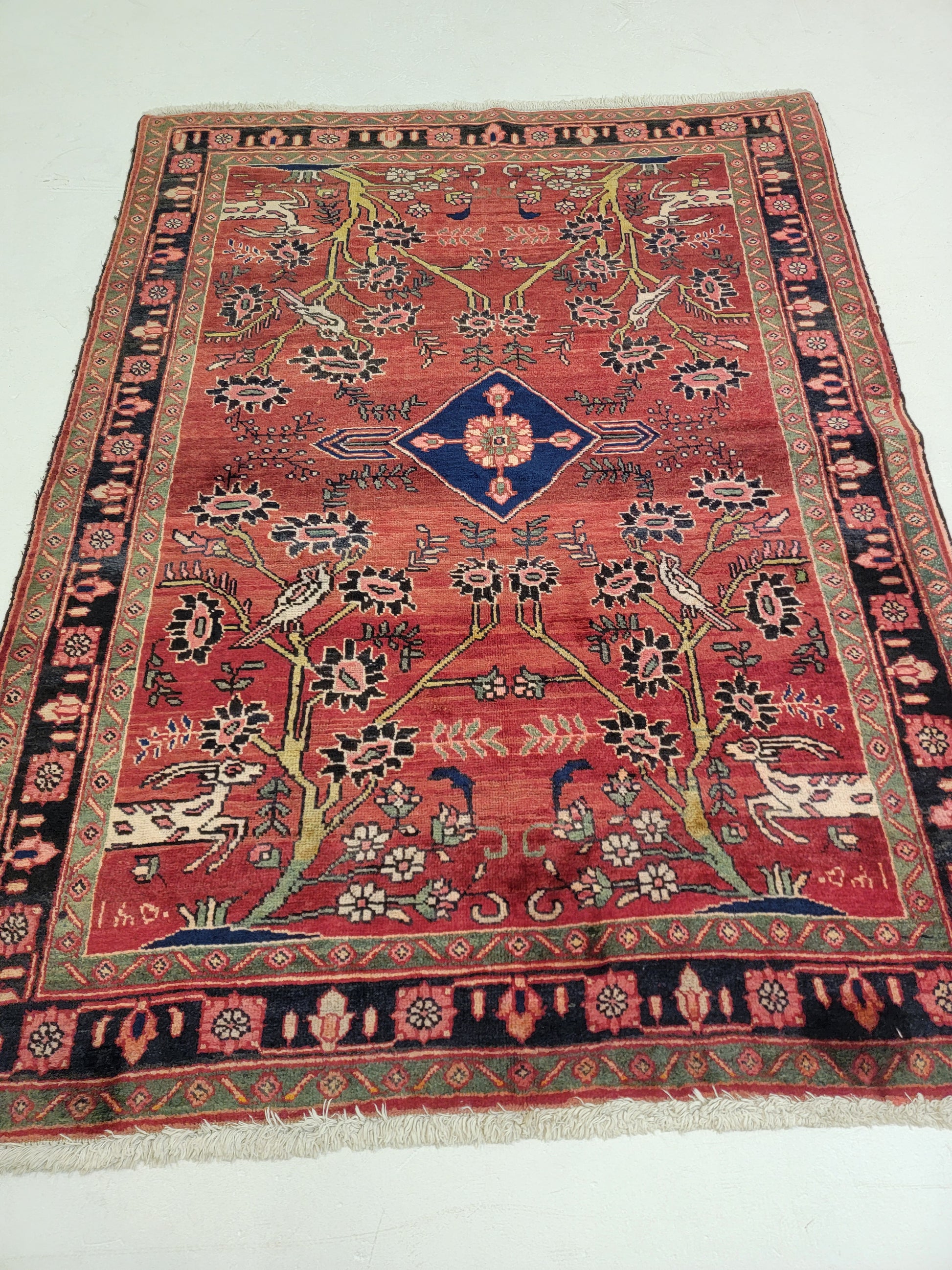 Antique Hand-Knotted Wool Area Rug Khalkhal Garden of Eden 4'7" x 6'2"
