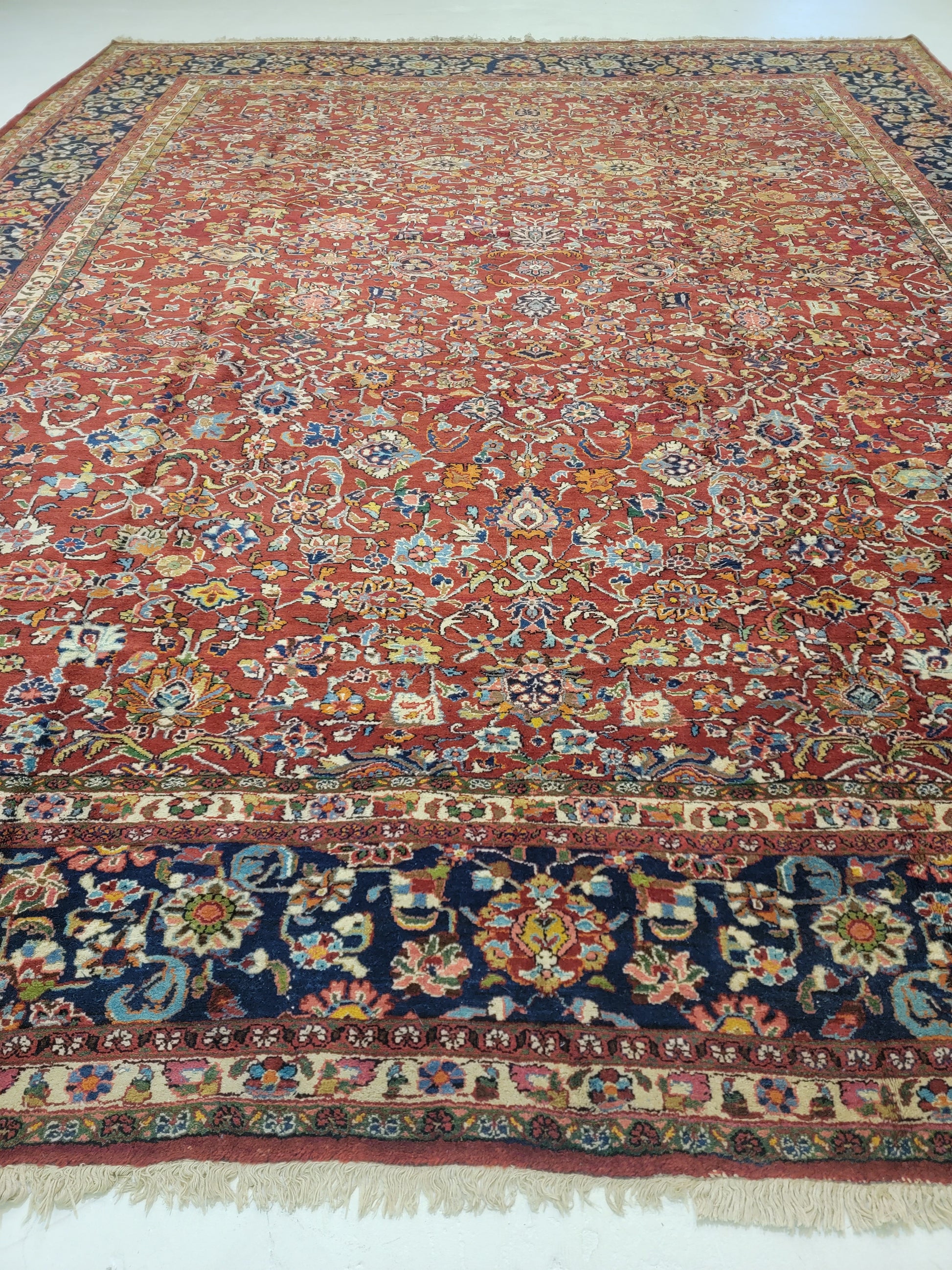 Antique Hand-Knotted Wool Area Rug Mahal 11'10" x 15'