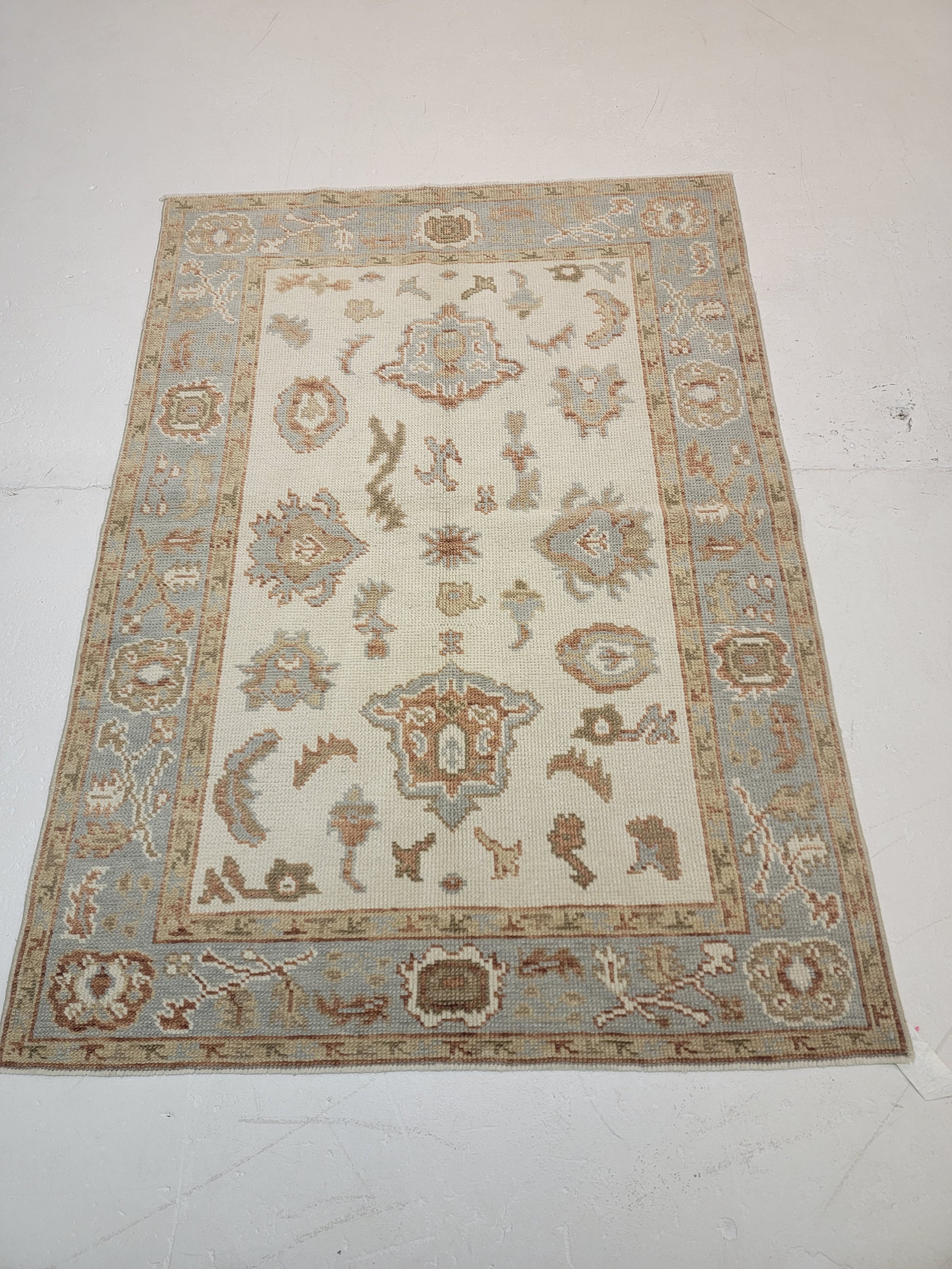 Hand-Knotted Wool Area Rug Turkish Oushak 3'9" x 5'2"