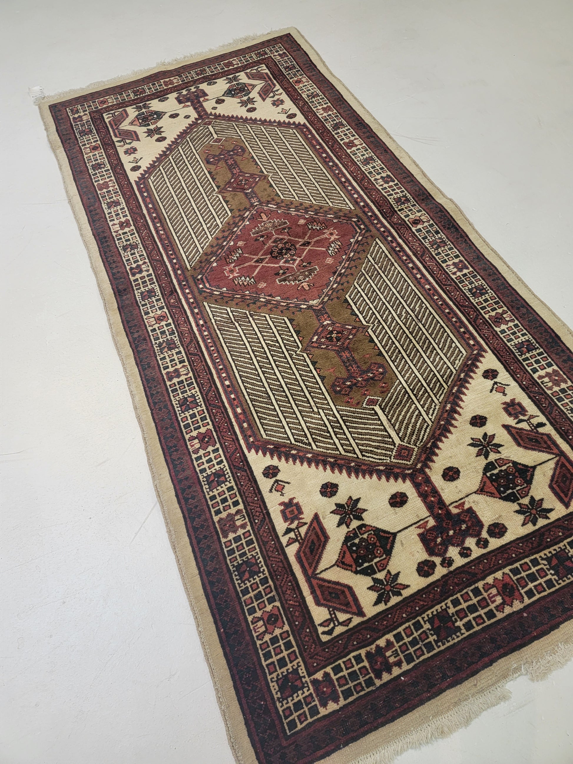 Antique Hand-Knotted Wool Gallery Size Sarab 3'3" x 7'7"