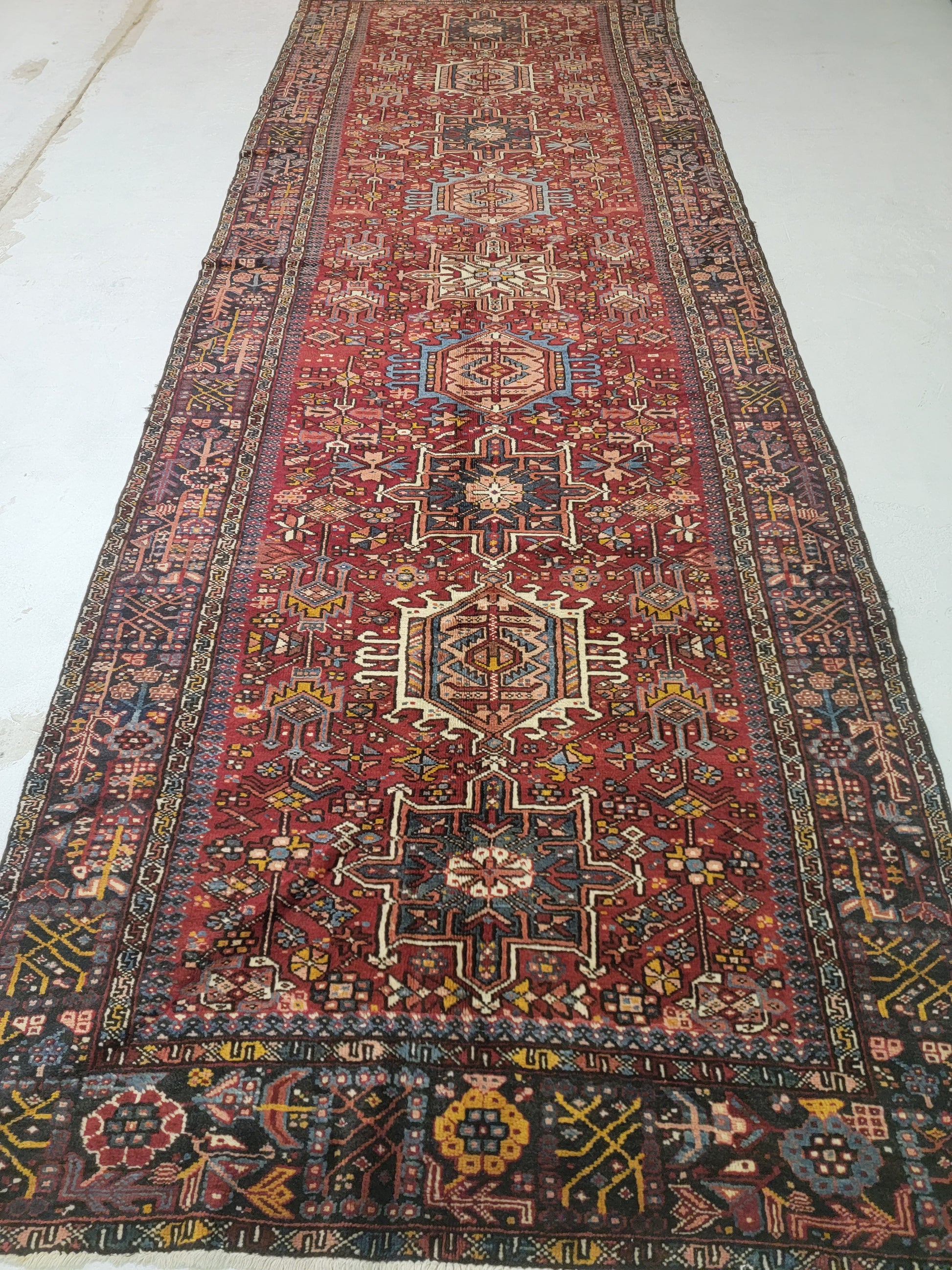 Hand-Knotted Wool Gallery Size Heriz Karajeh 4'10" x 14'5"