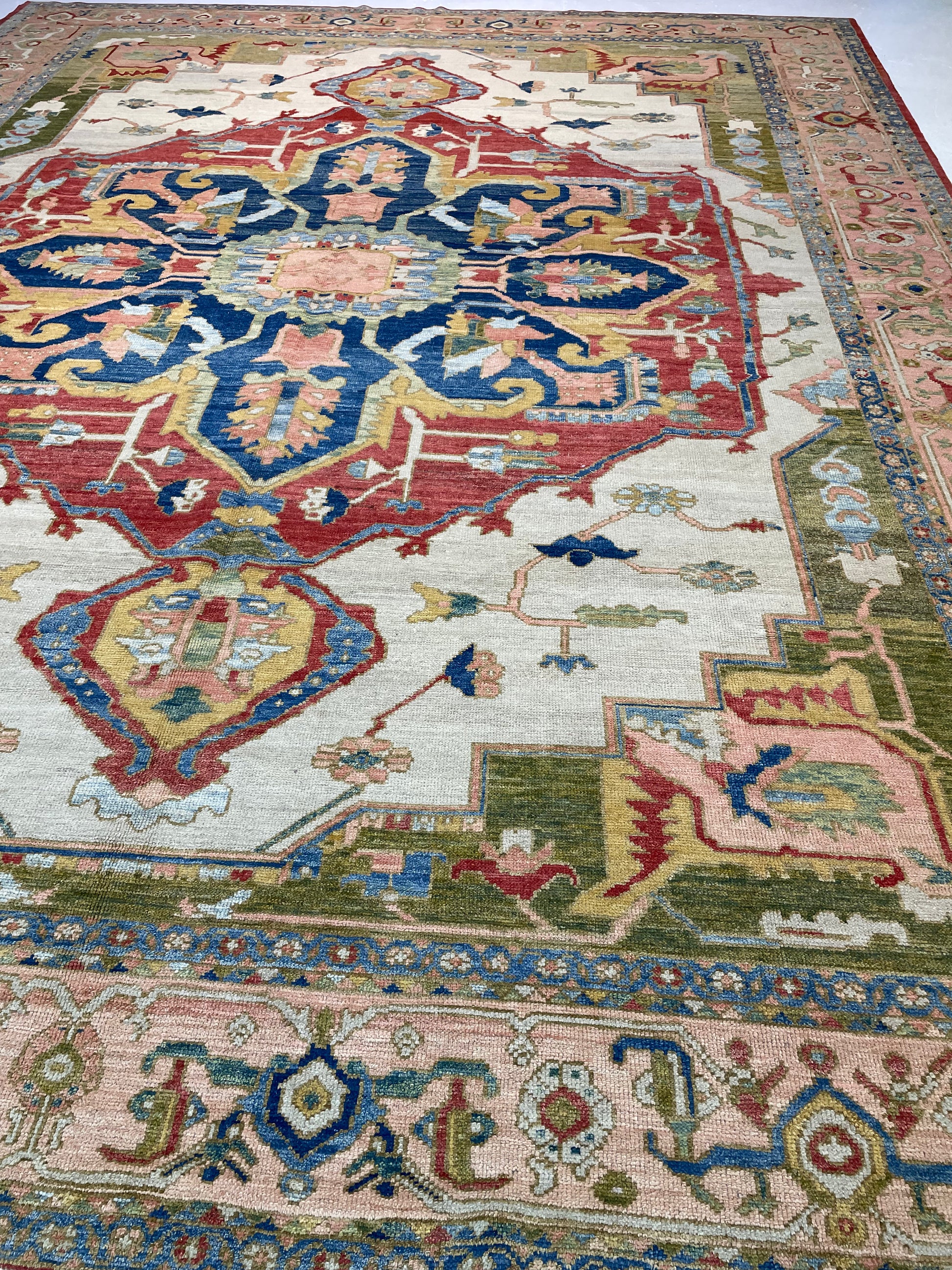 Hand-Knotted Wool Rug Serapi Design Turkish Oushak 12'1" x 15'4"
