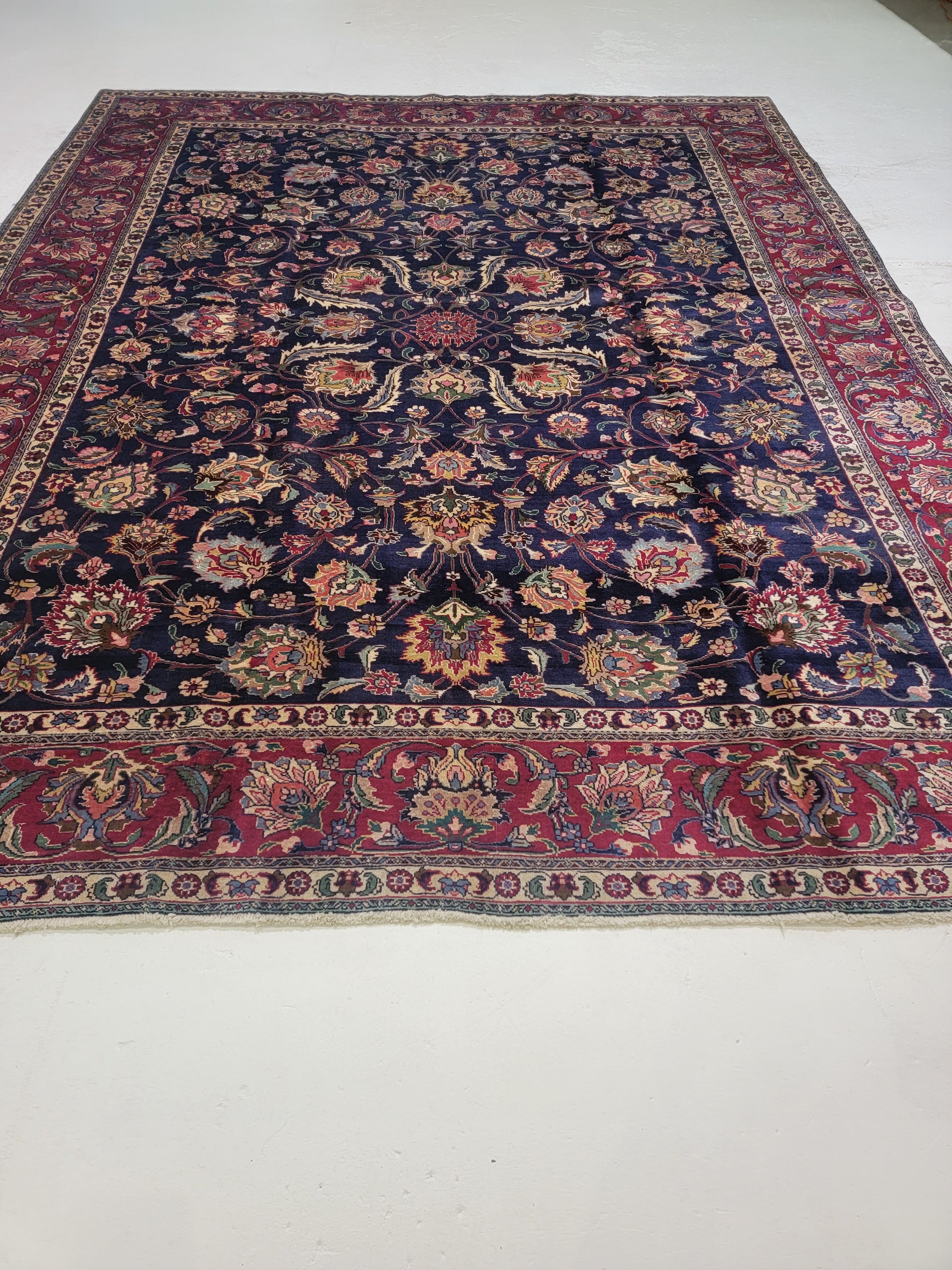 Hand-Knotted Wool Rug Tabriz Signed 10' x 12'10"