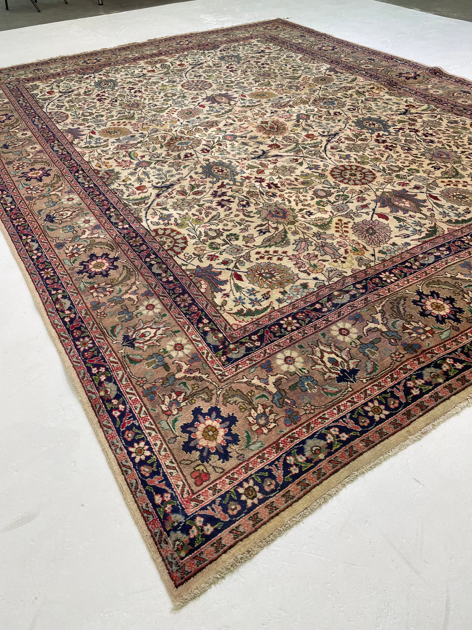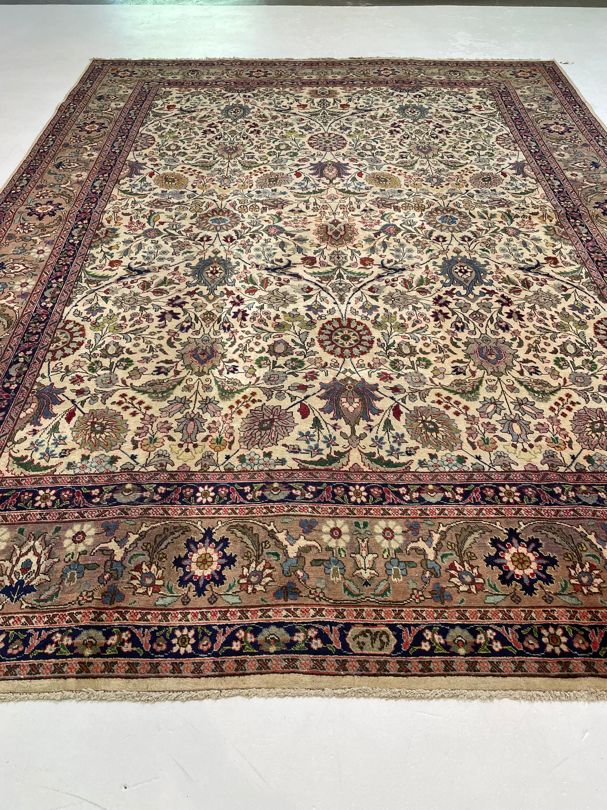 Hand-Knotted Wool Rug Tabriz Signed 9'5" x 12'8"