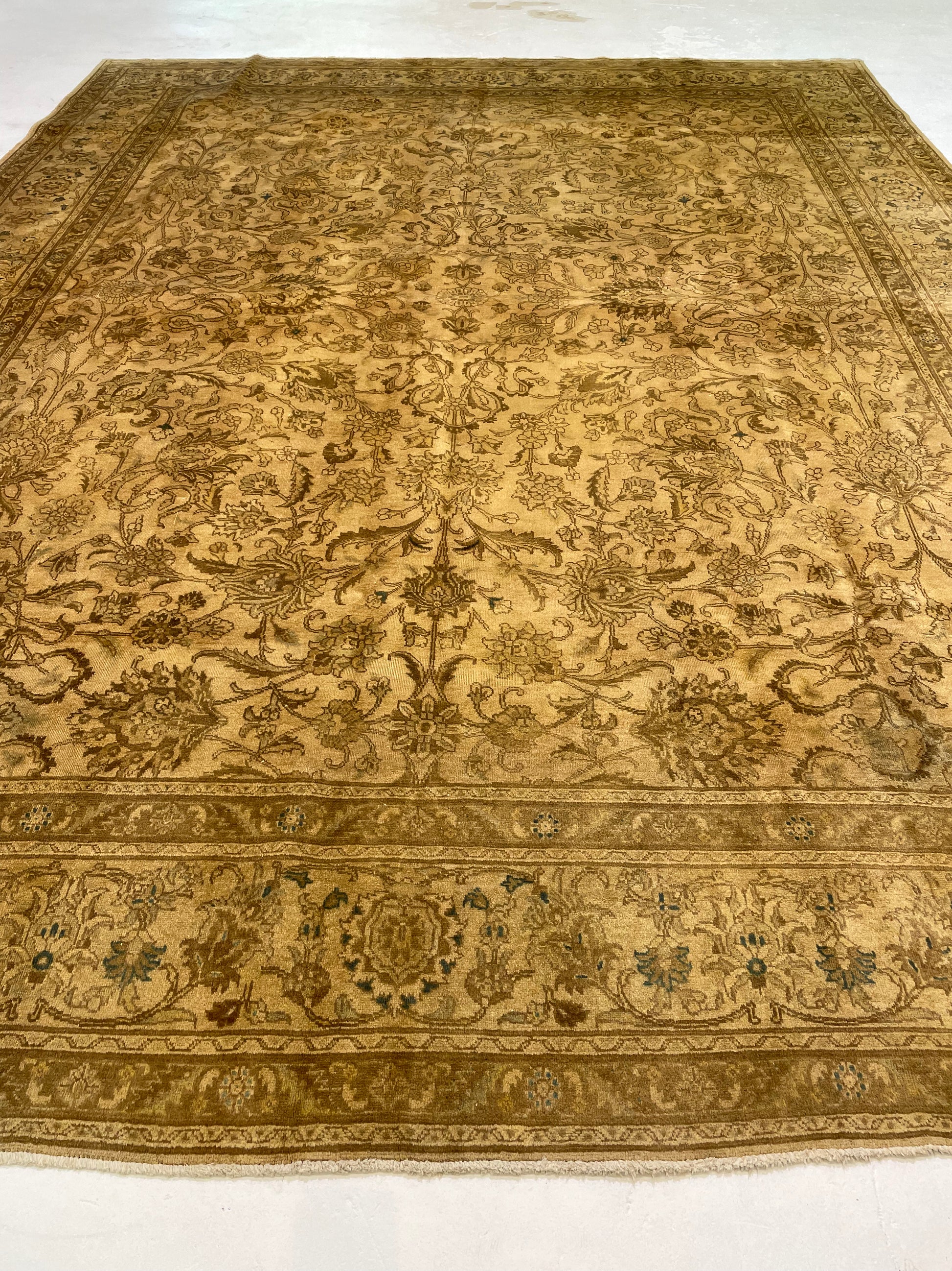 Hand-Knotted Wool Rug Tabriz Tea Washed 11'3" x 14'8"
