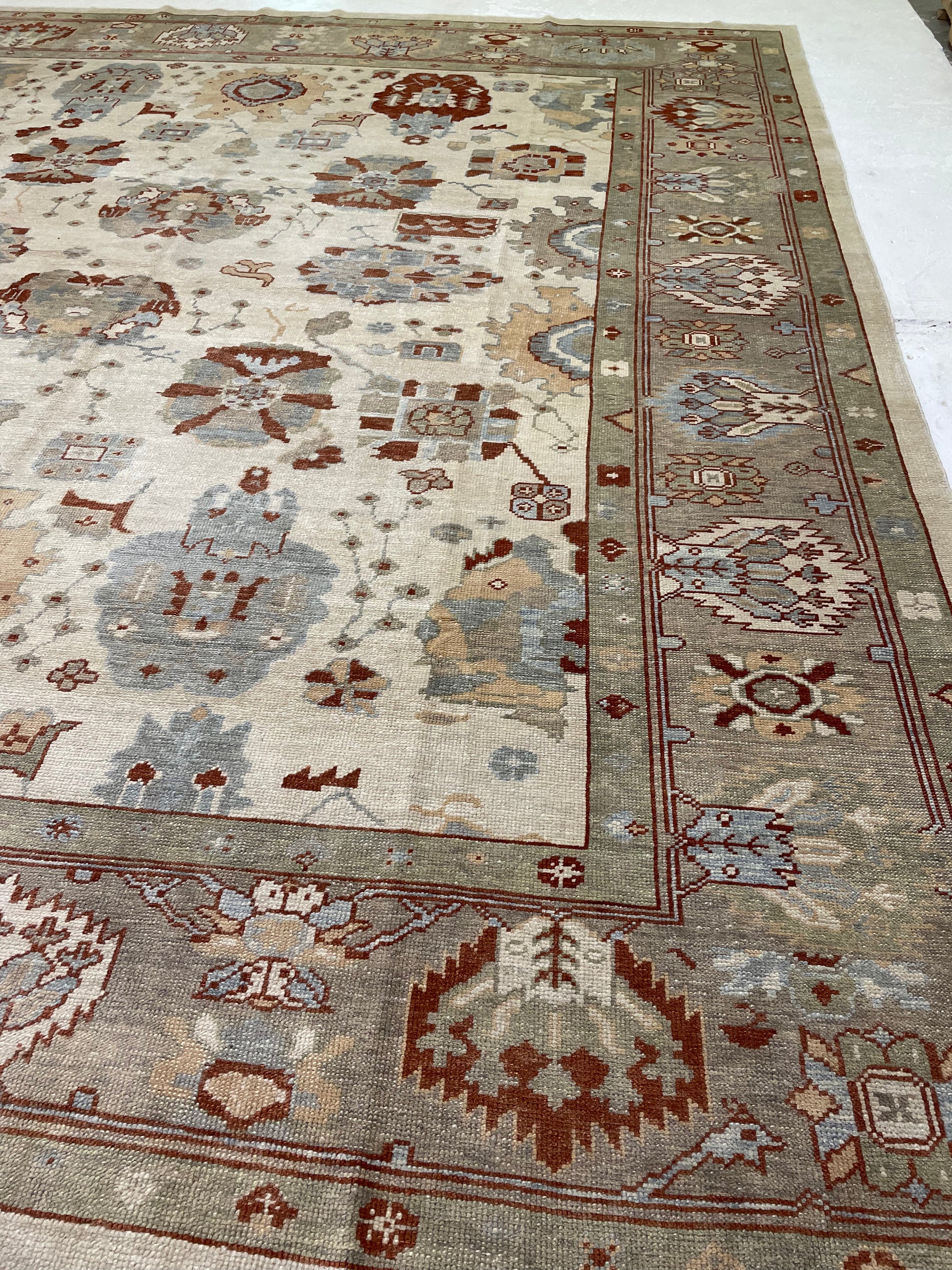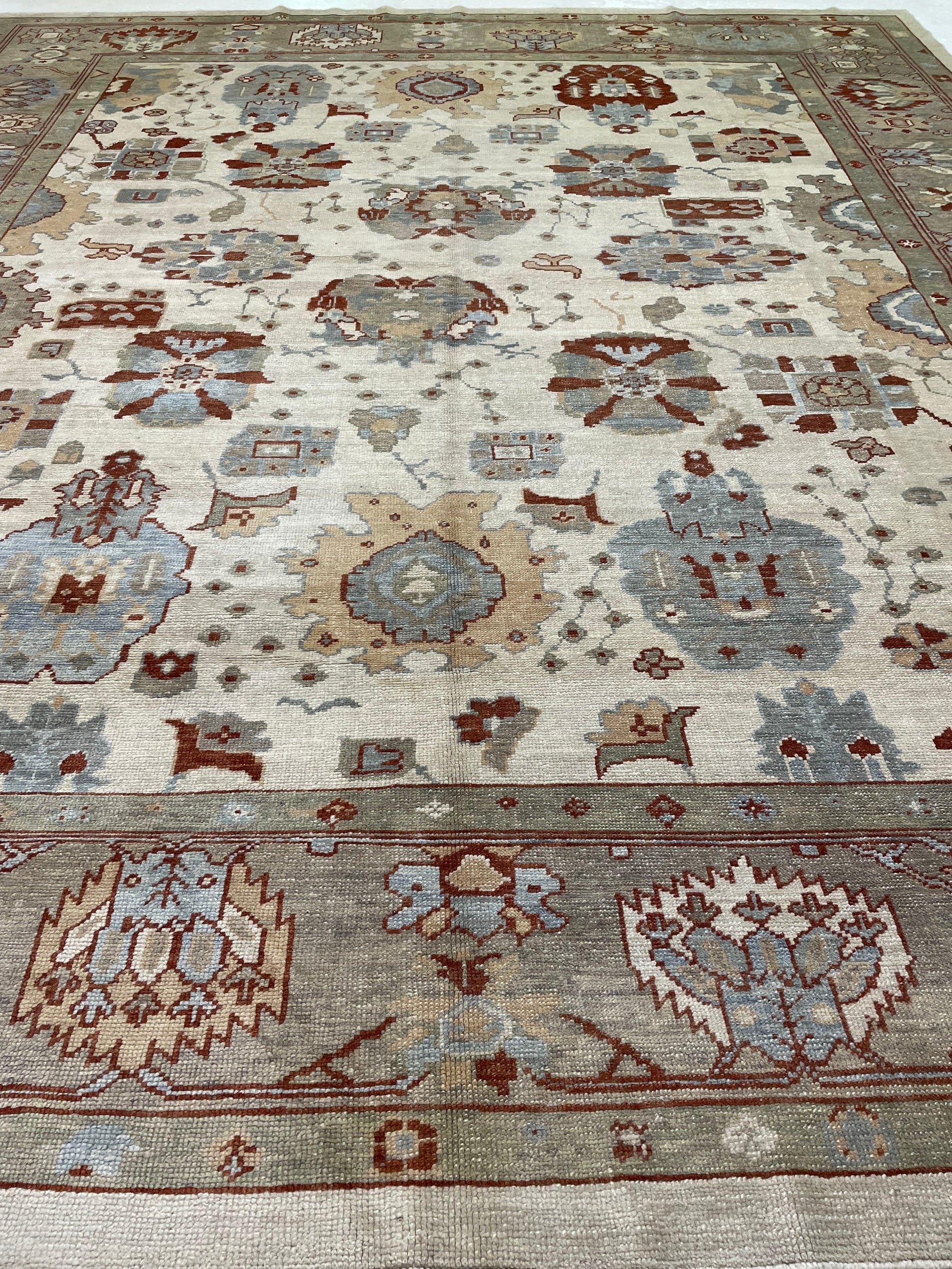 Hand-Knotted Wool Rug Turkish Oushak 12'4" x 14'2"