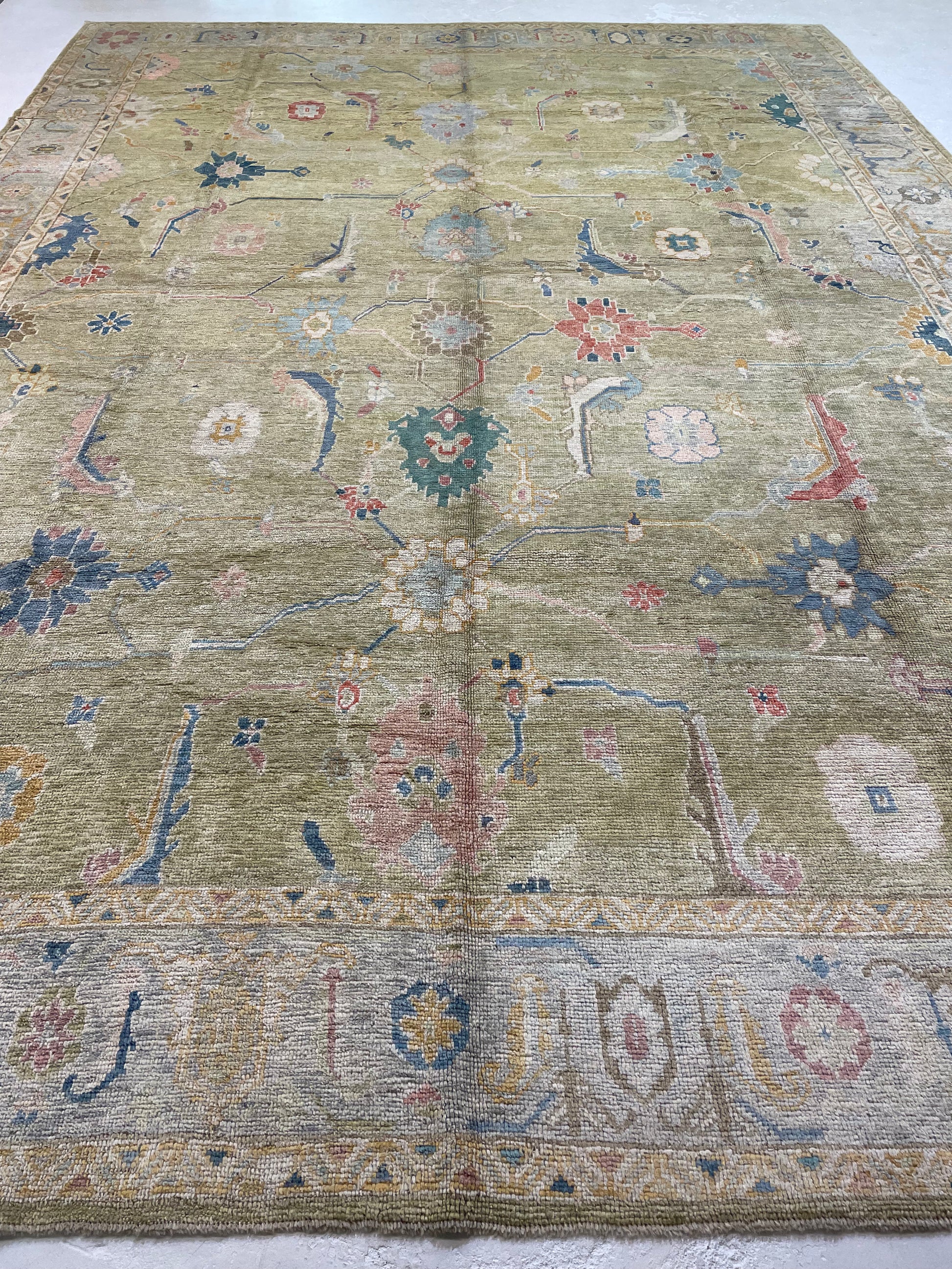 Hand-Knotted Wool Rug Turkish Oushak 12'4" x 17'4"