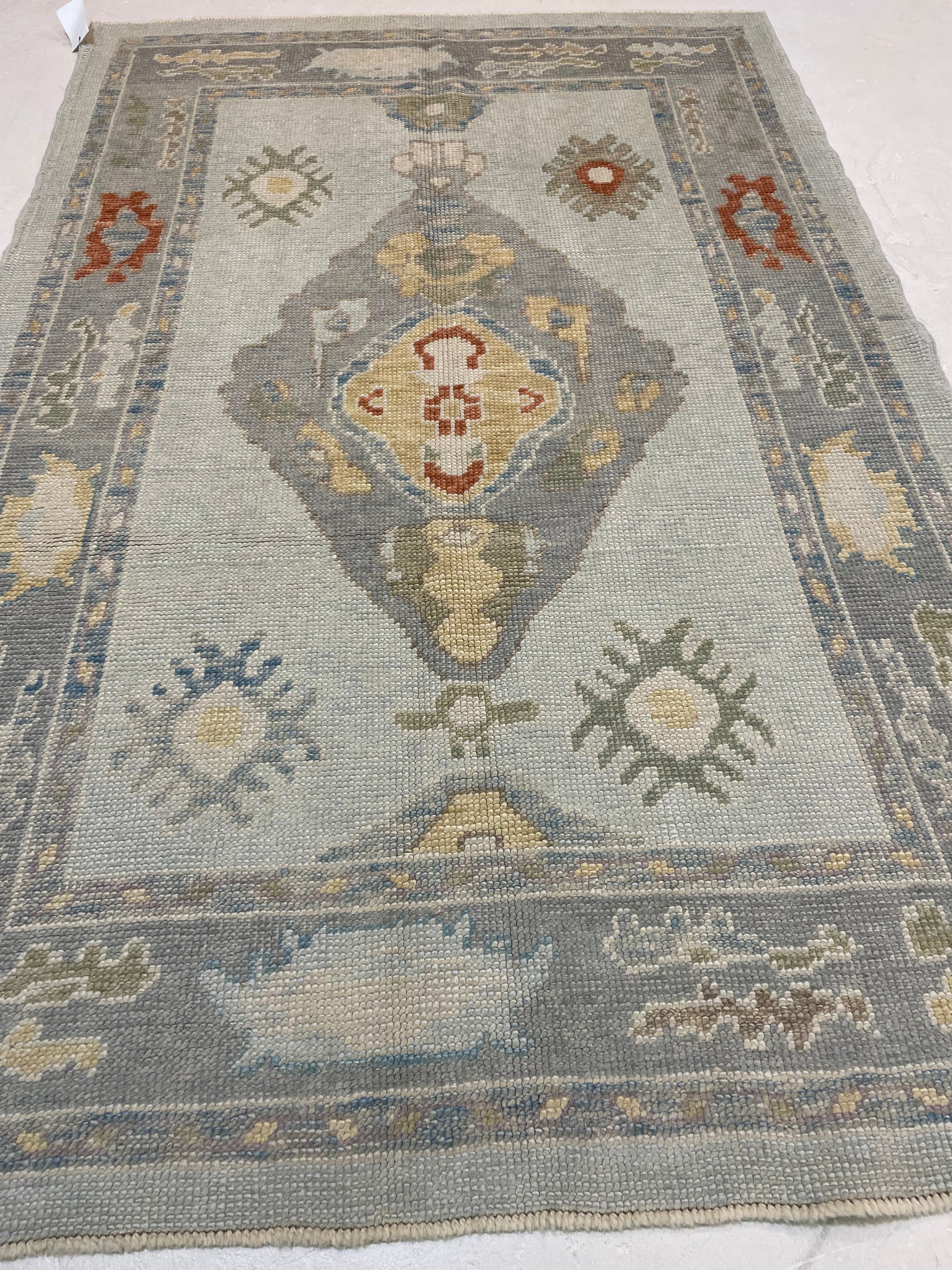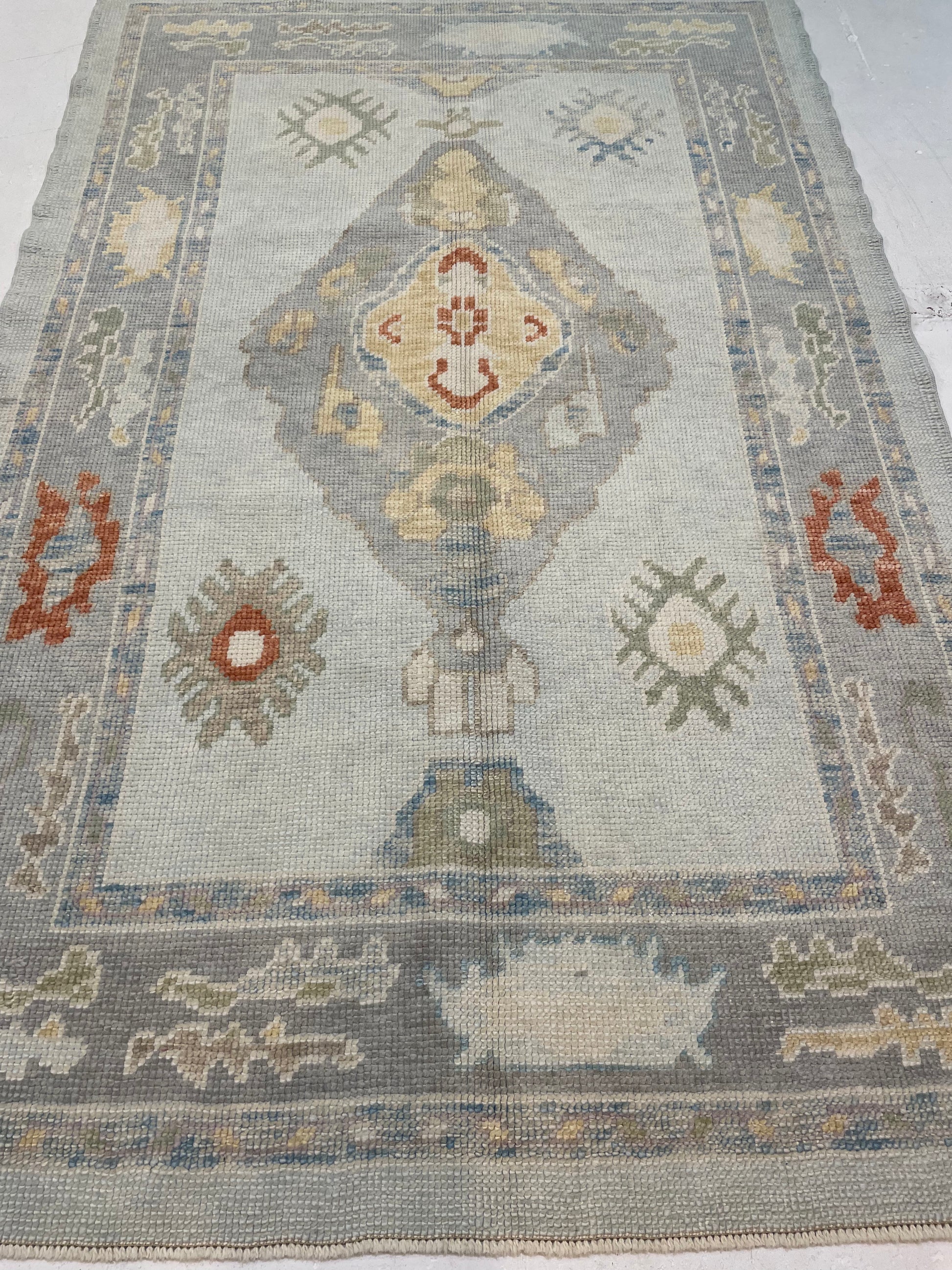 Hand-Knotted Wool Rug Turkish Oushak 4'1" x 6'3"