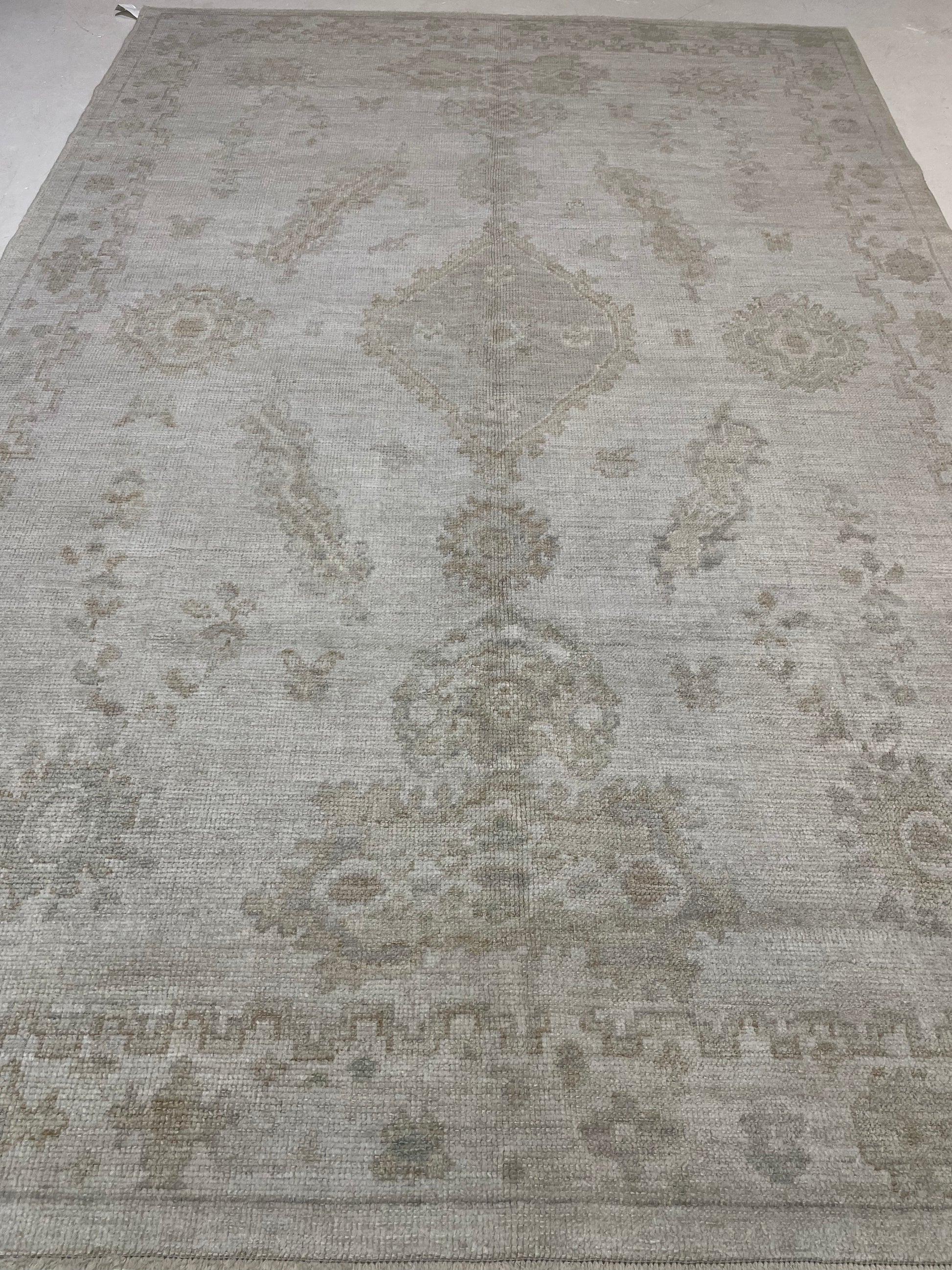 Hand-Knotted Wool Rug Turkish Oushak 6'1" x 9'3"