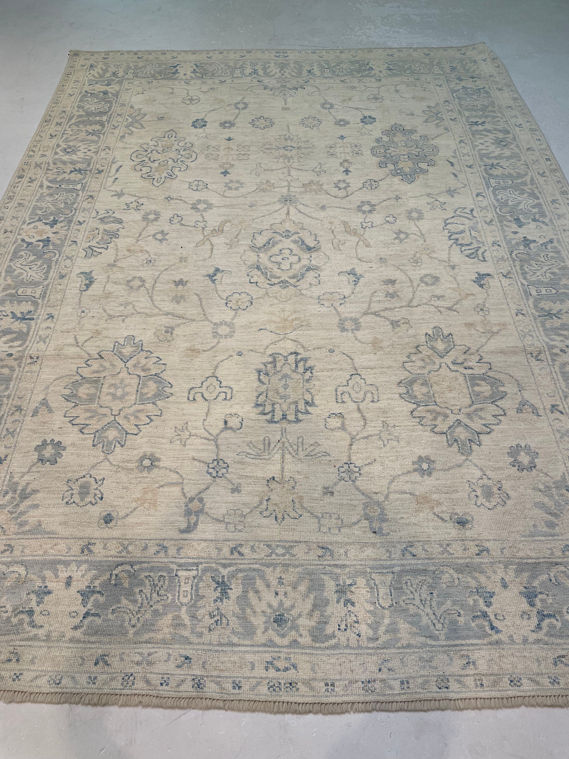 Hand-Knotted Wool Rug Turkish Oushak 7'2" x 9'9"