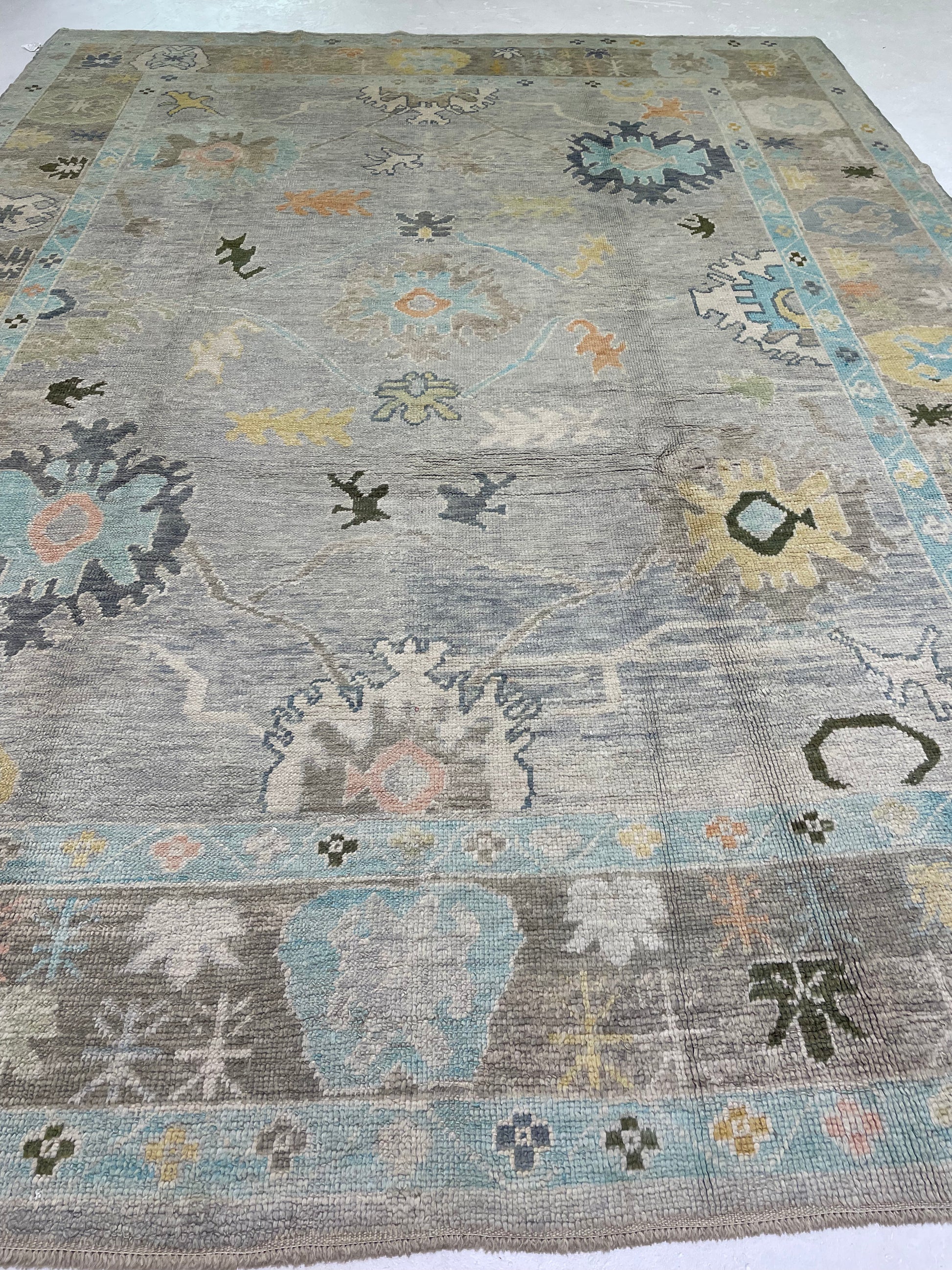 Hand-Knotted Wool Rug Turkish Oushak 8'9" x 11'10"
