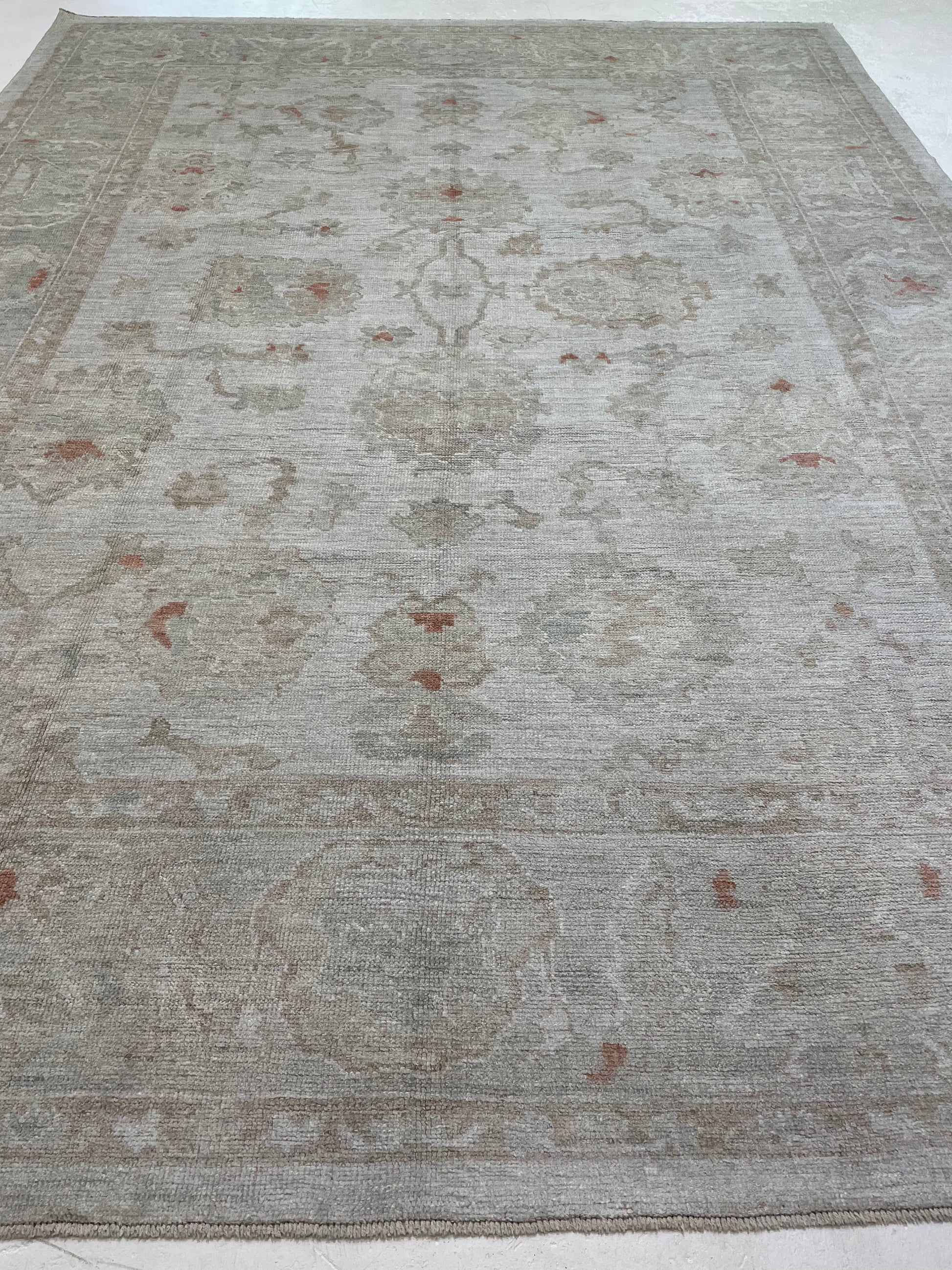 Hand-Knotted Wool Rug Turkish Oushak 9'1" x 12'4"