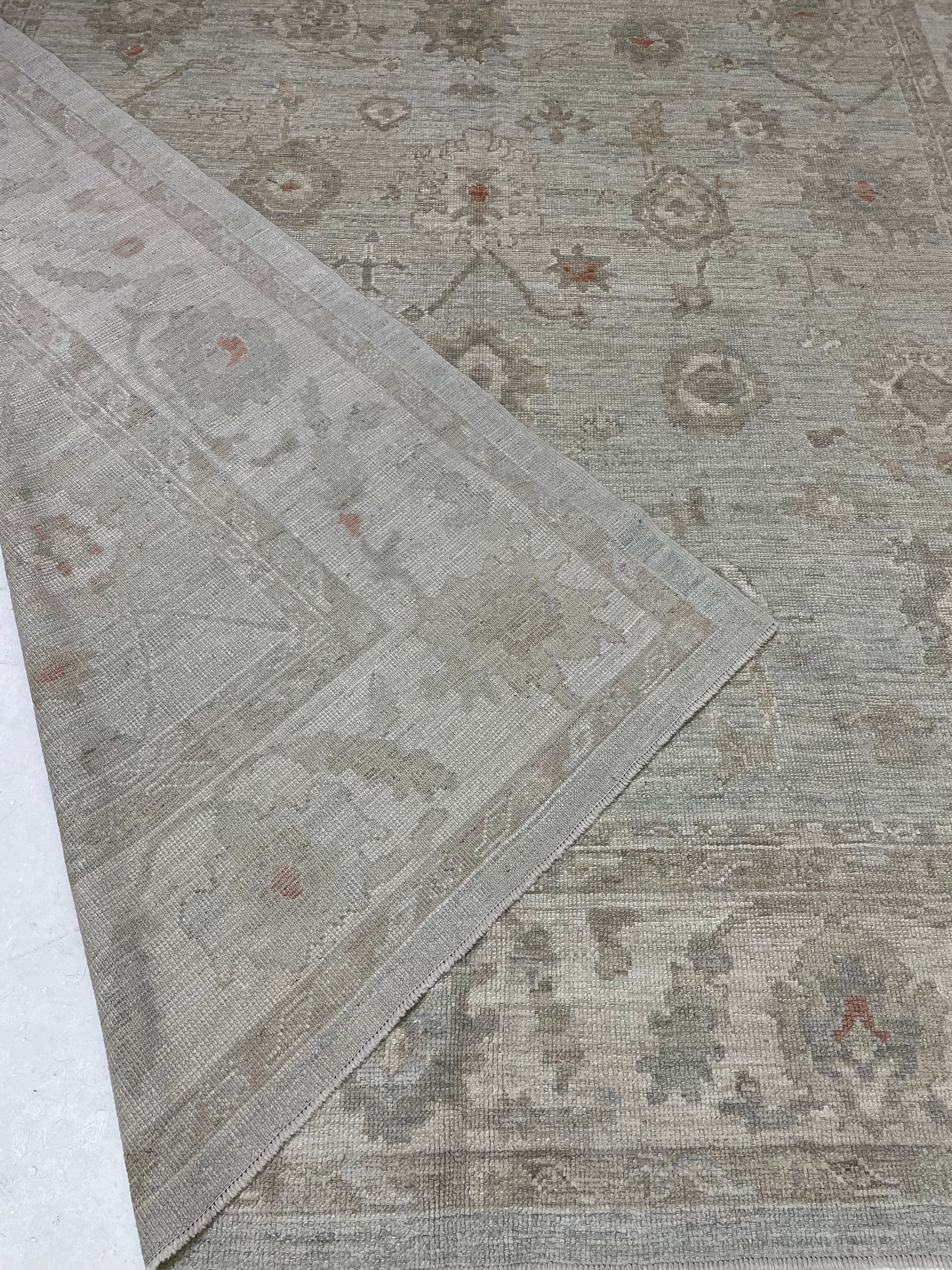 Hand-Knotted Wool Rug Turkish Oushak 9'2" x 11'10"