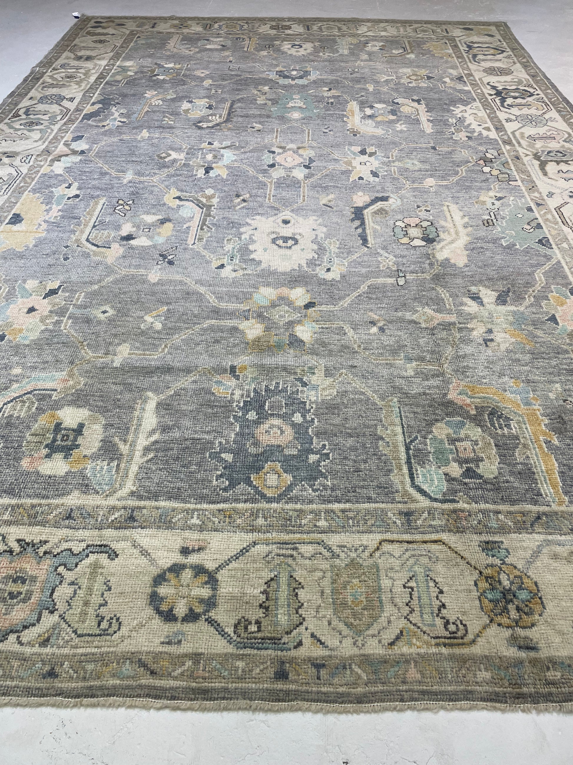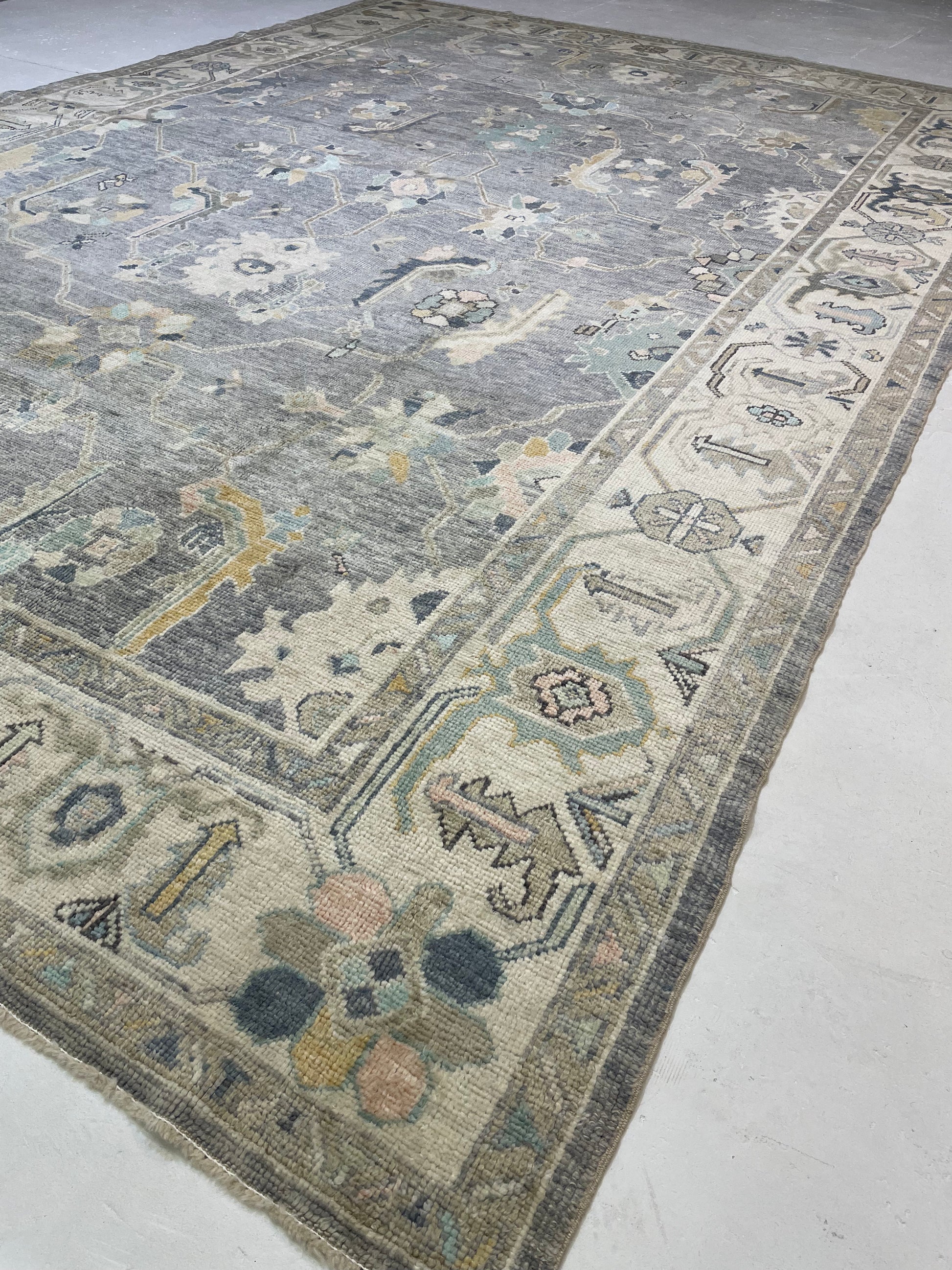 Hand-Knotted Wool Rug Turkish Oushak 9'7" x 14'1"