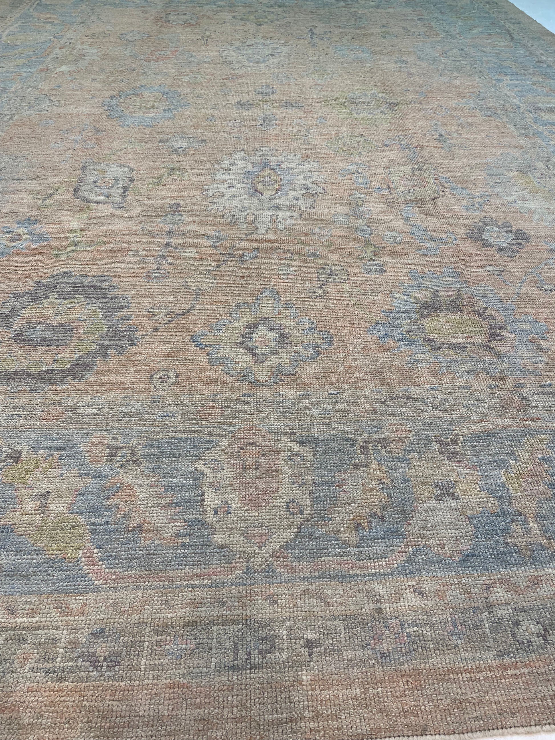 Hand-Knotted Wool Rug Turkish Oushak 9'9" x 13'1"
