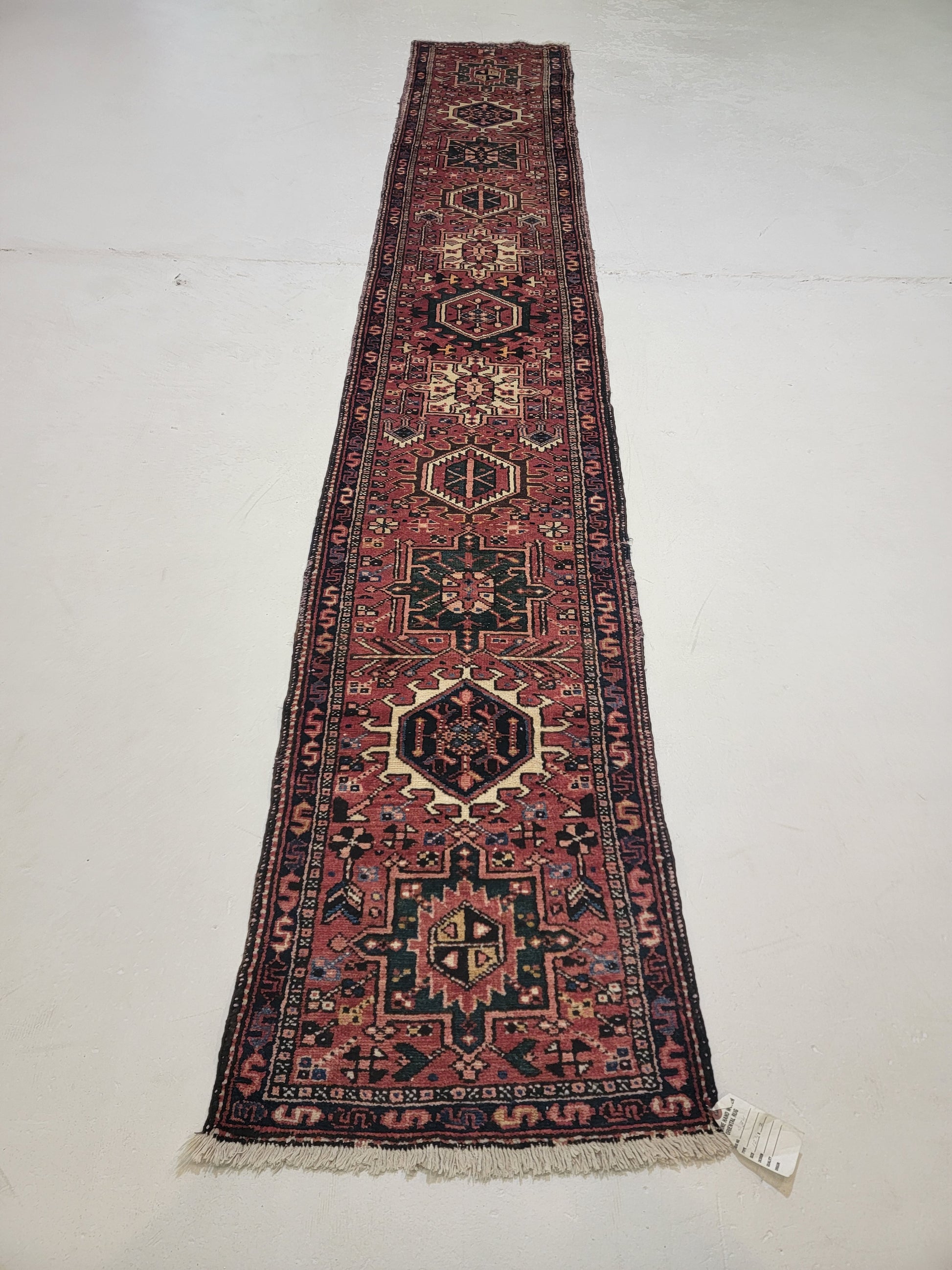 Antique Hand-Knotted Wool Runner Heriz Karajeh 2' x 12'4"