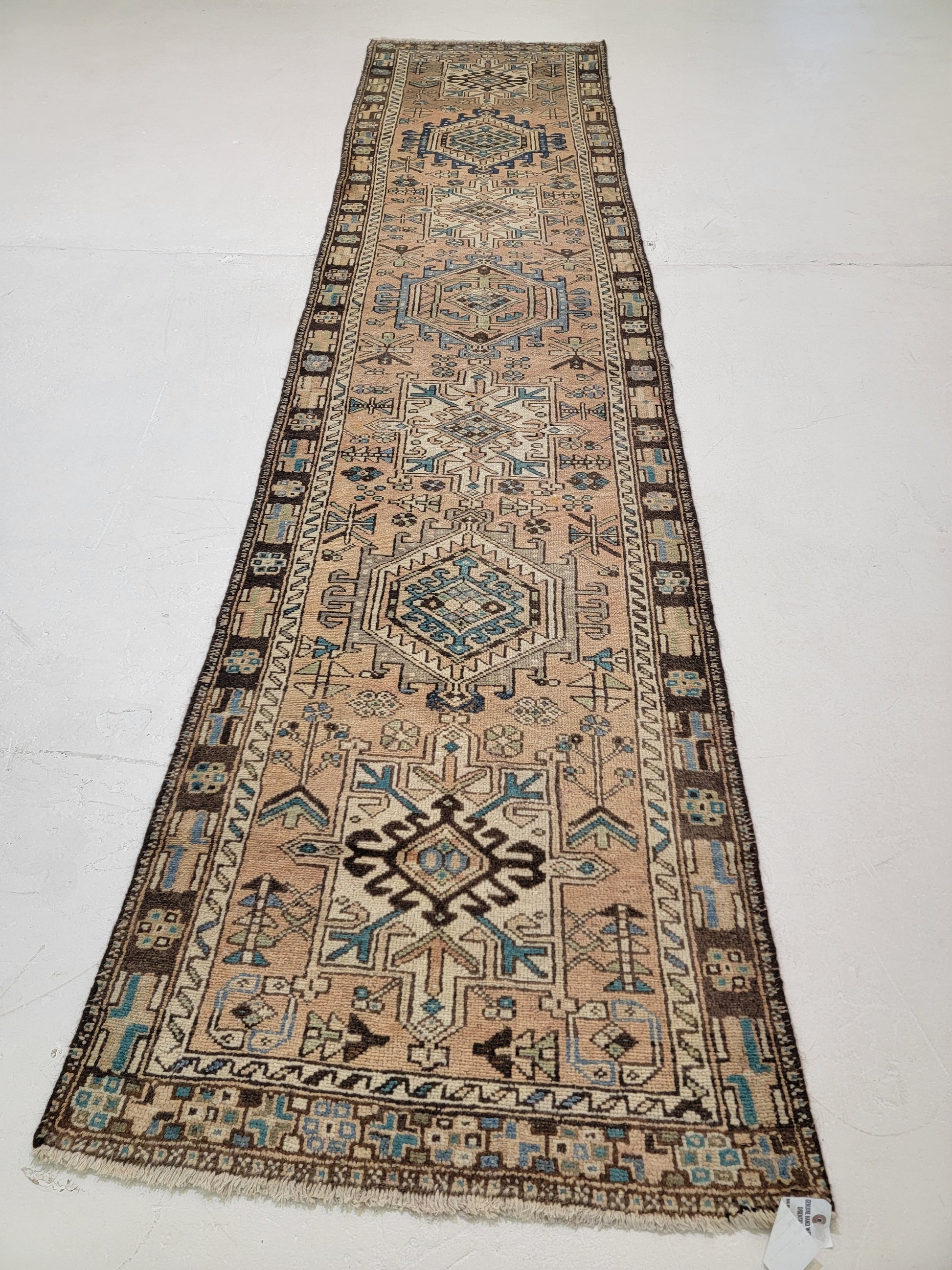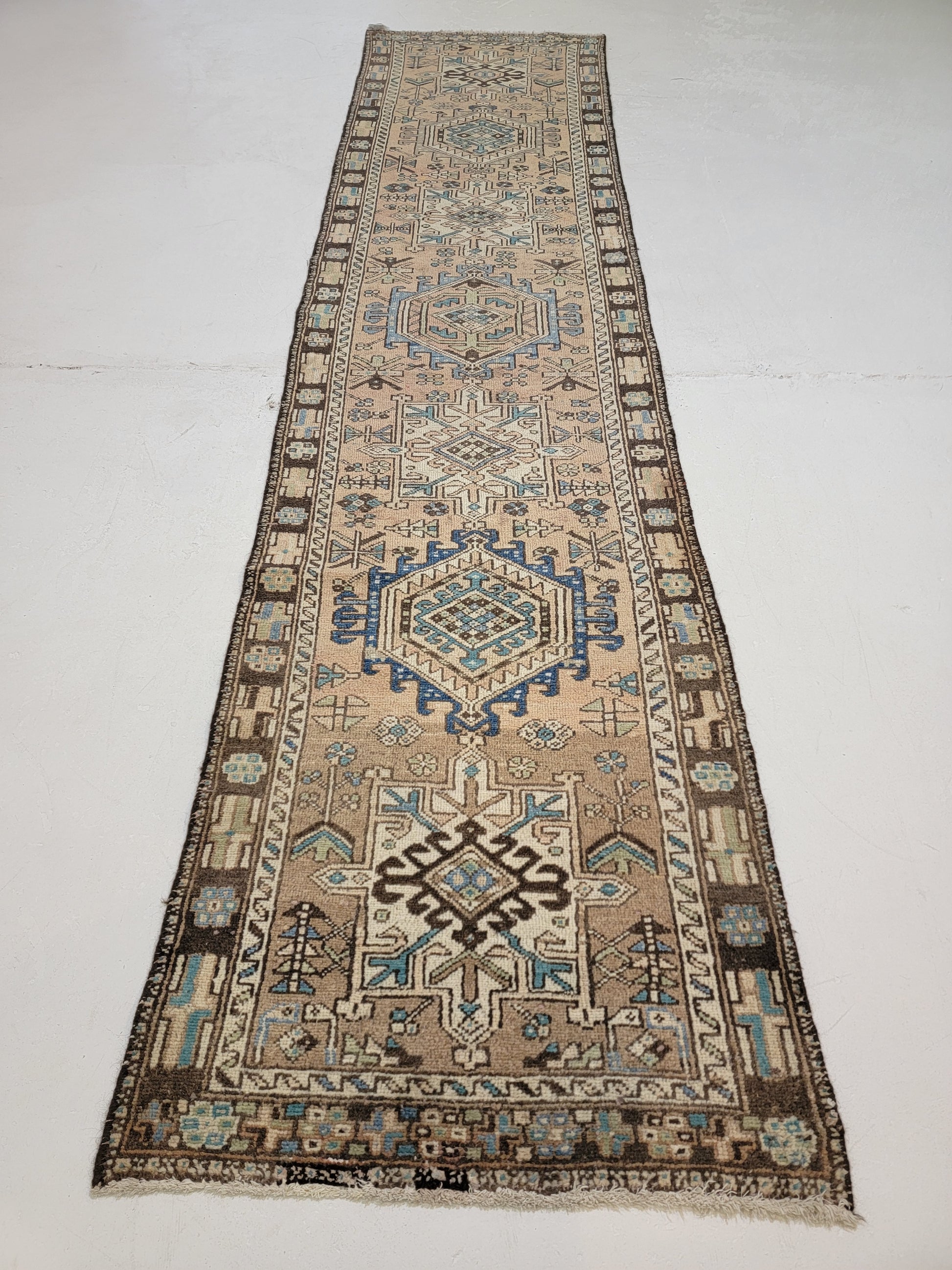 Antique Hand-Knotted Wool Runner Heriz Karajeh 2'10" x 11'10"