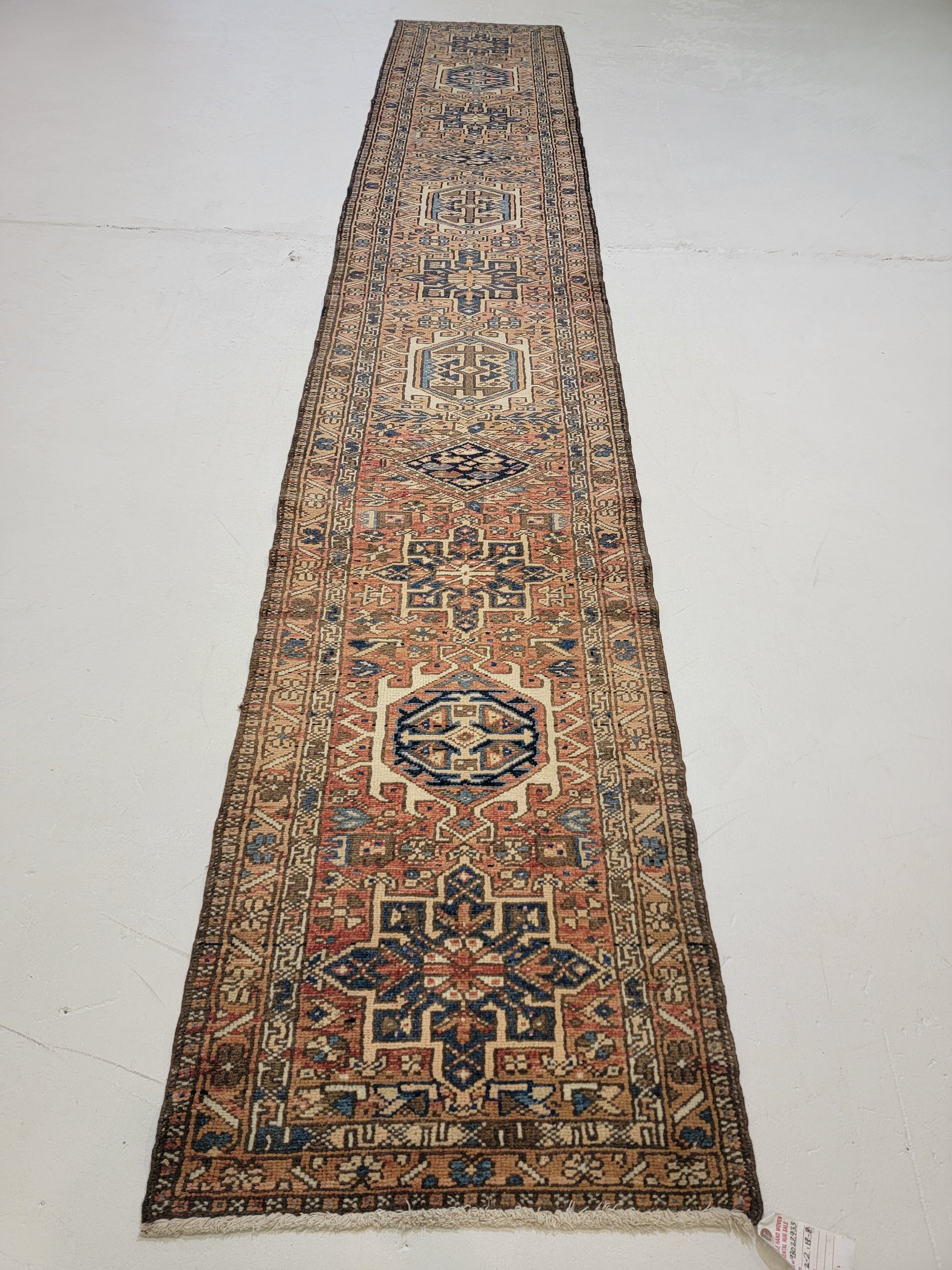 Antique Hand-Knotted Wool Runner Heriz Karajeh 2'2" x 13'8"