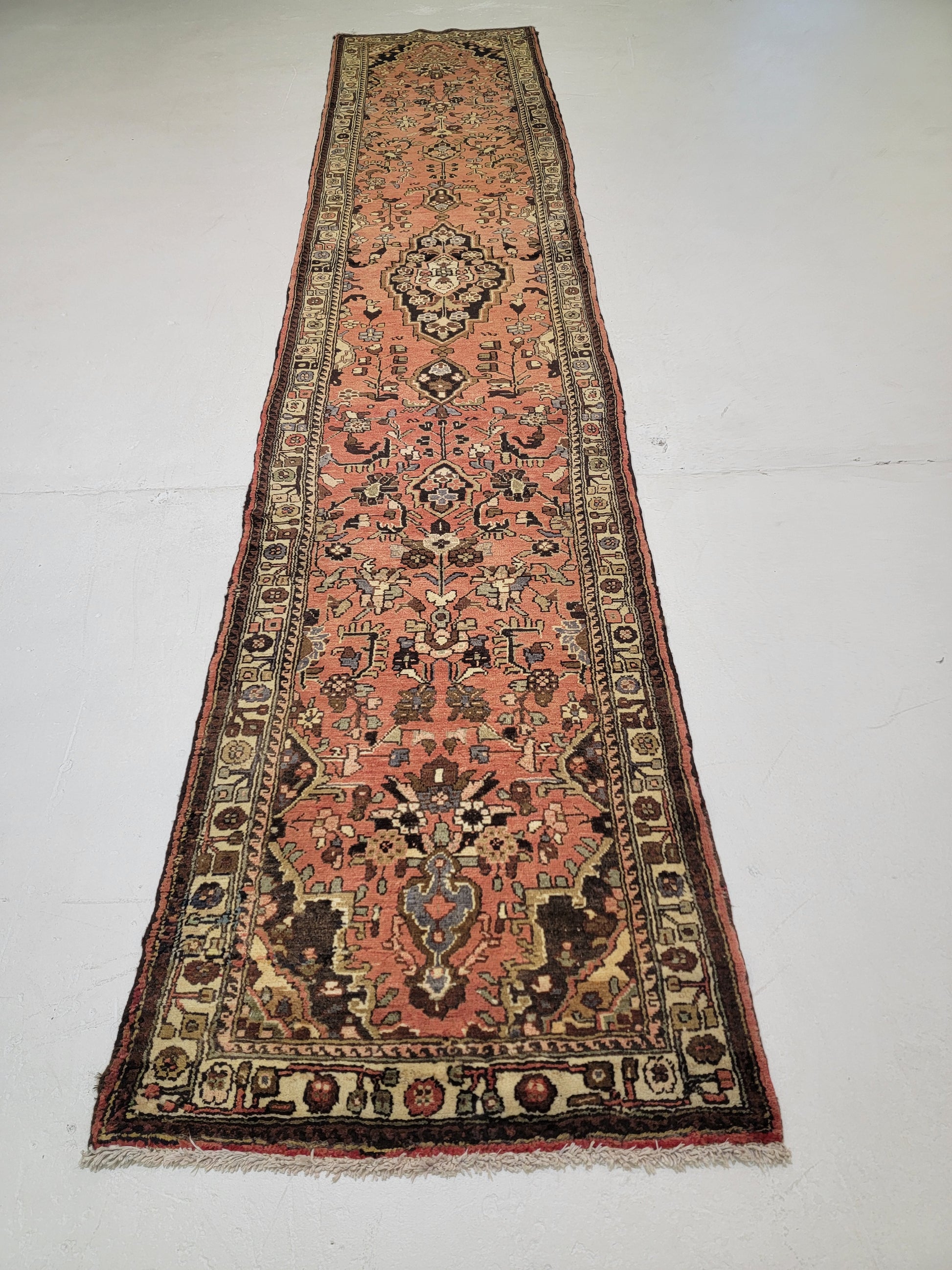 Antique Hand-Knotted Wool Runner Hamedan Rudbar 2'9" x 13'8"