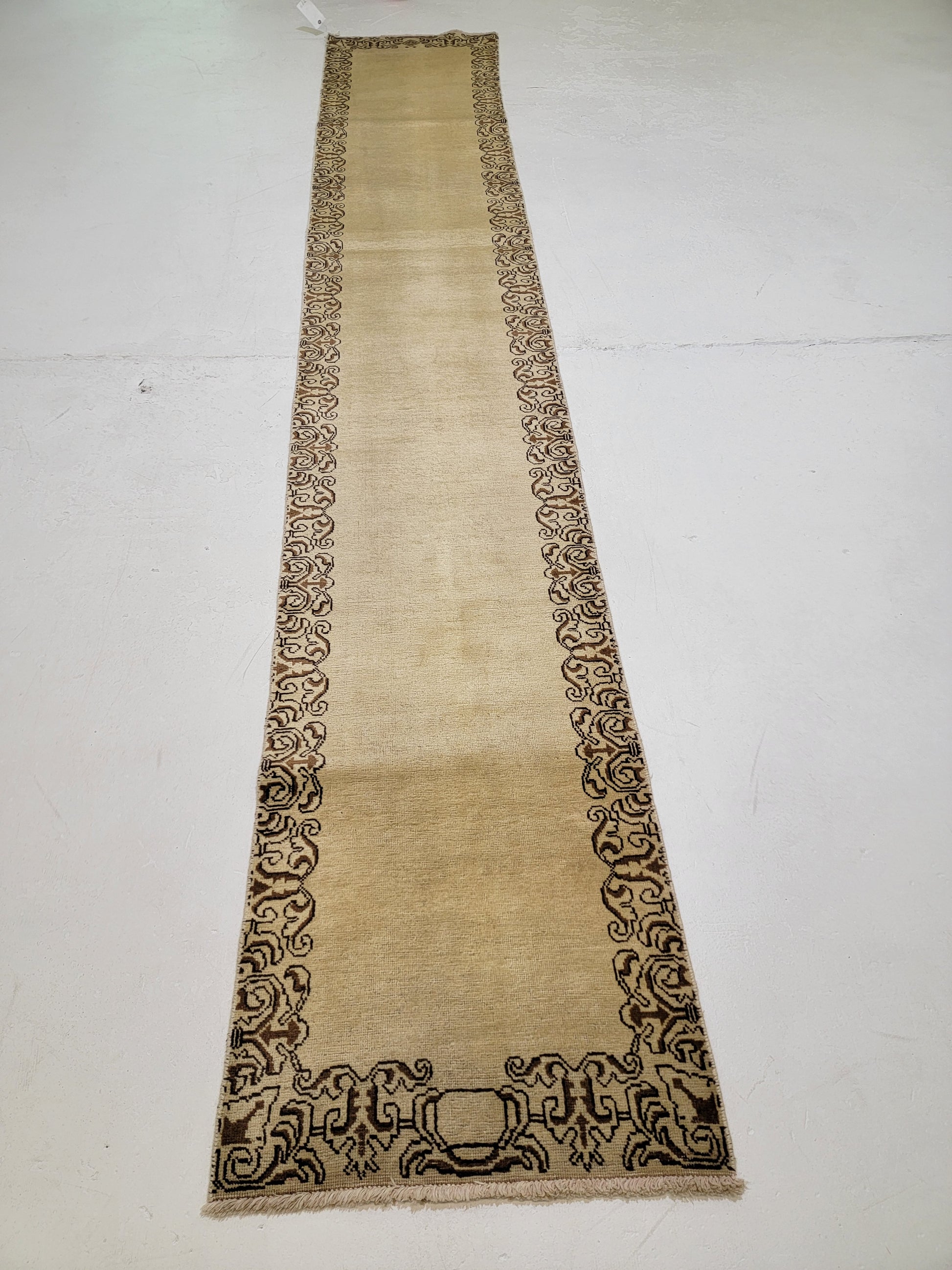 Antique Hand-Knotted Wool Runner Tabriz 3' x 23'