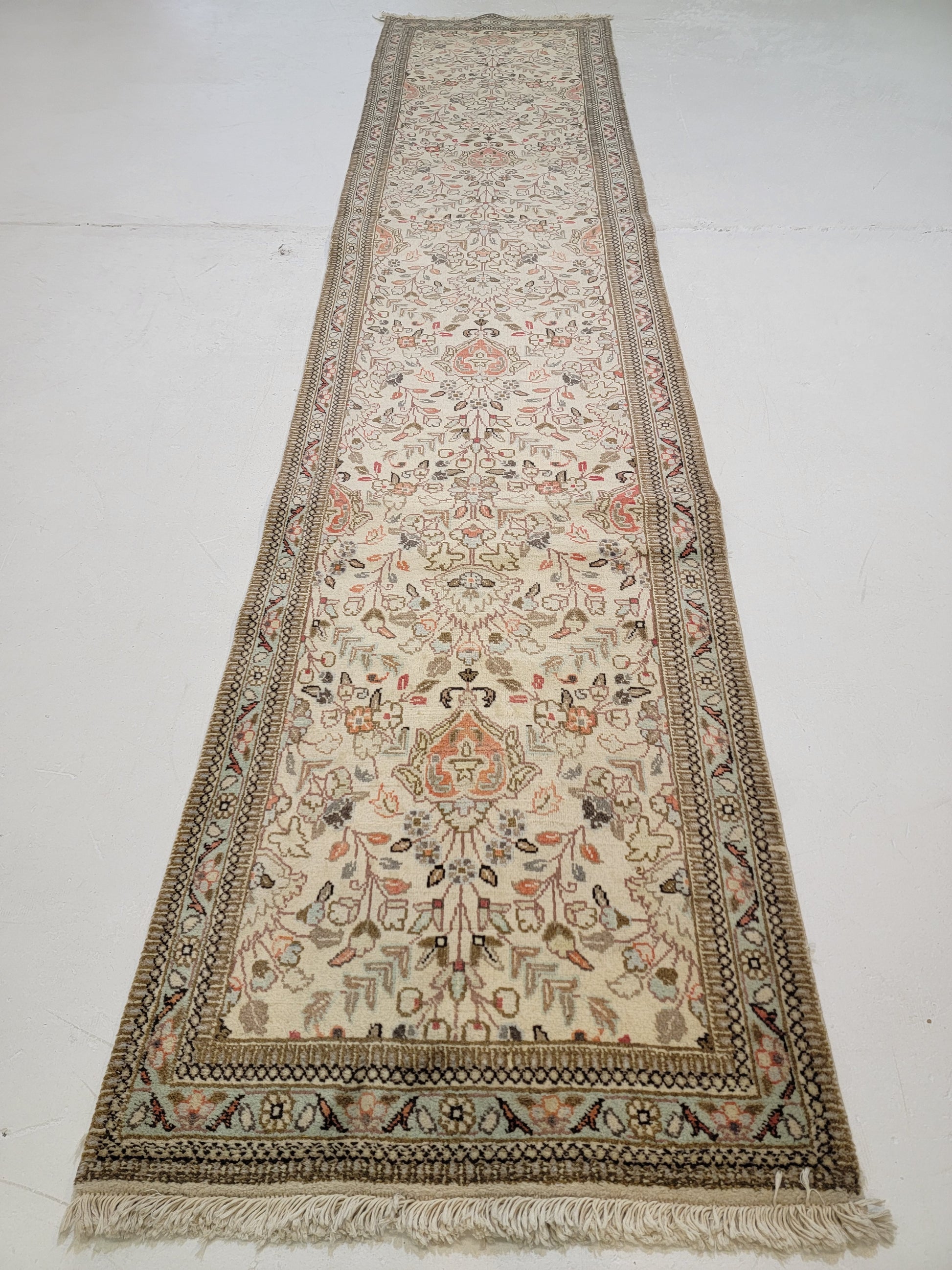 Antique Hand-Knotted Wool Runner Tabriz Tabatabaei 2'6" x 12'6"