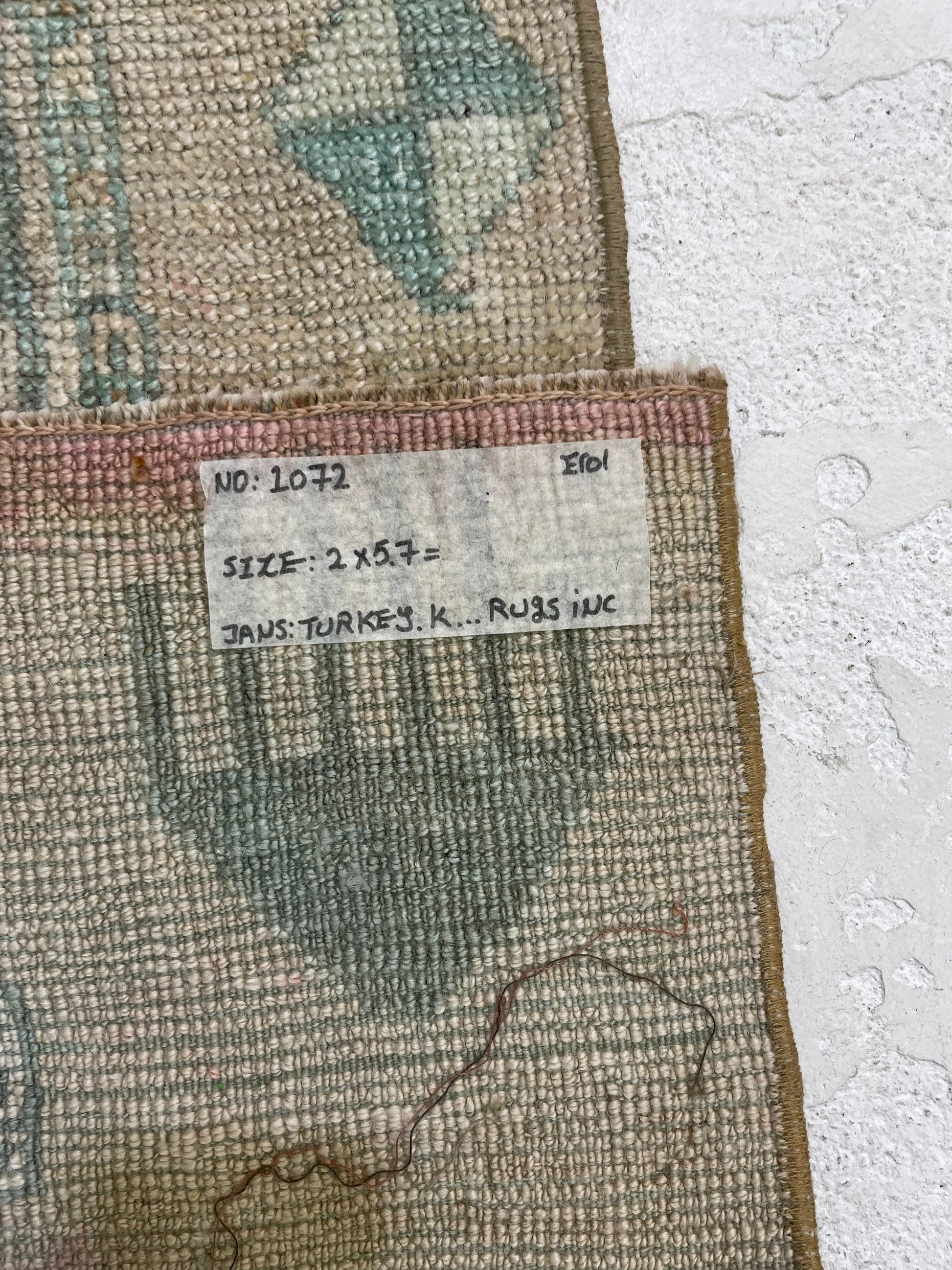 Hand-Knotted Wool Runner Turkish Oushak 2' x 5'7"