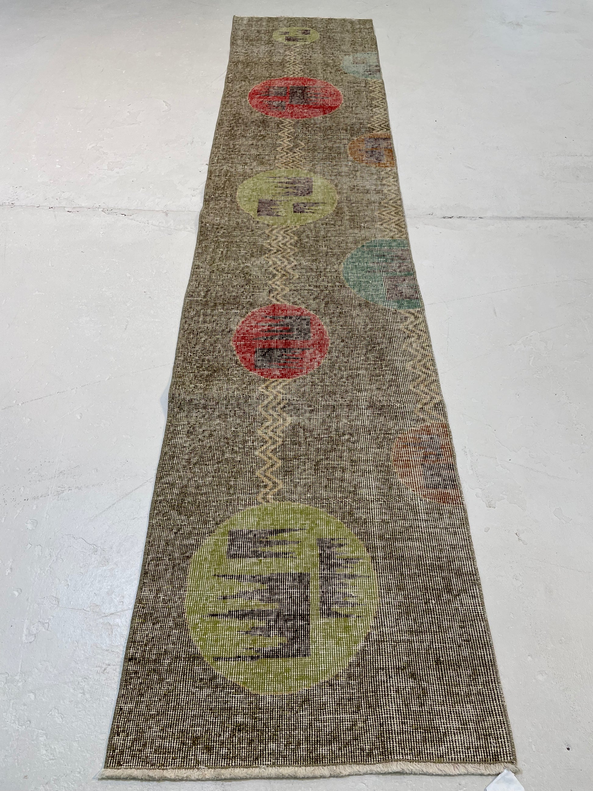 Hand-Knotted Wool Runner Turkish Oushak 2' x 9'8"