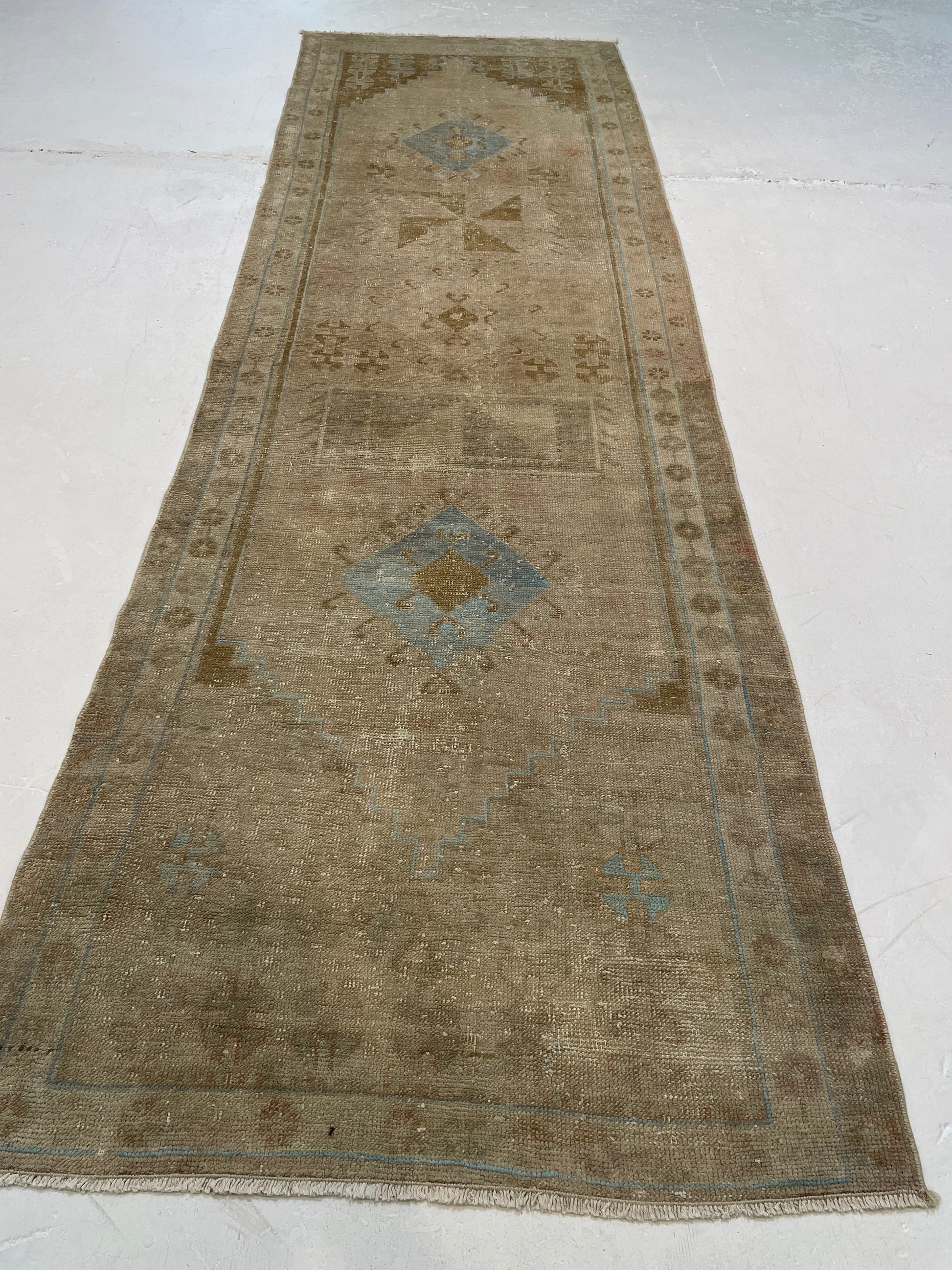 Hand-Knotted Wool Runner Turkish Oushak 2'11" x 9'6"