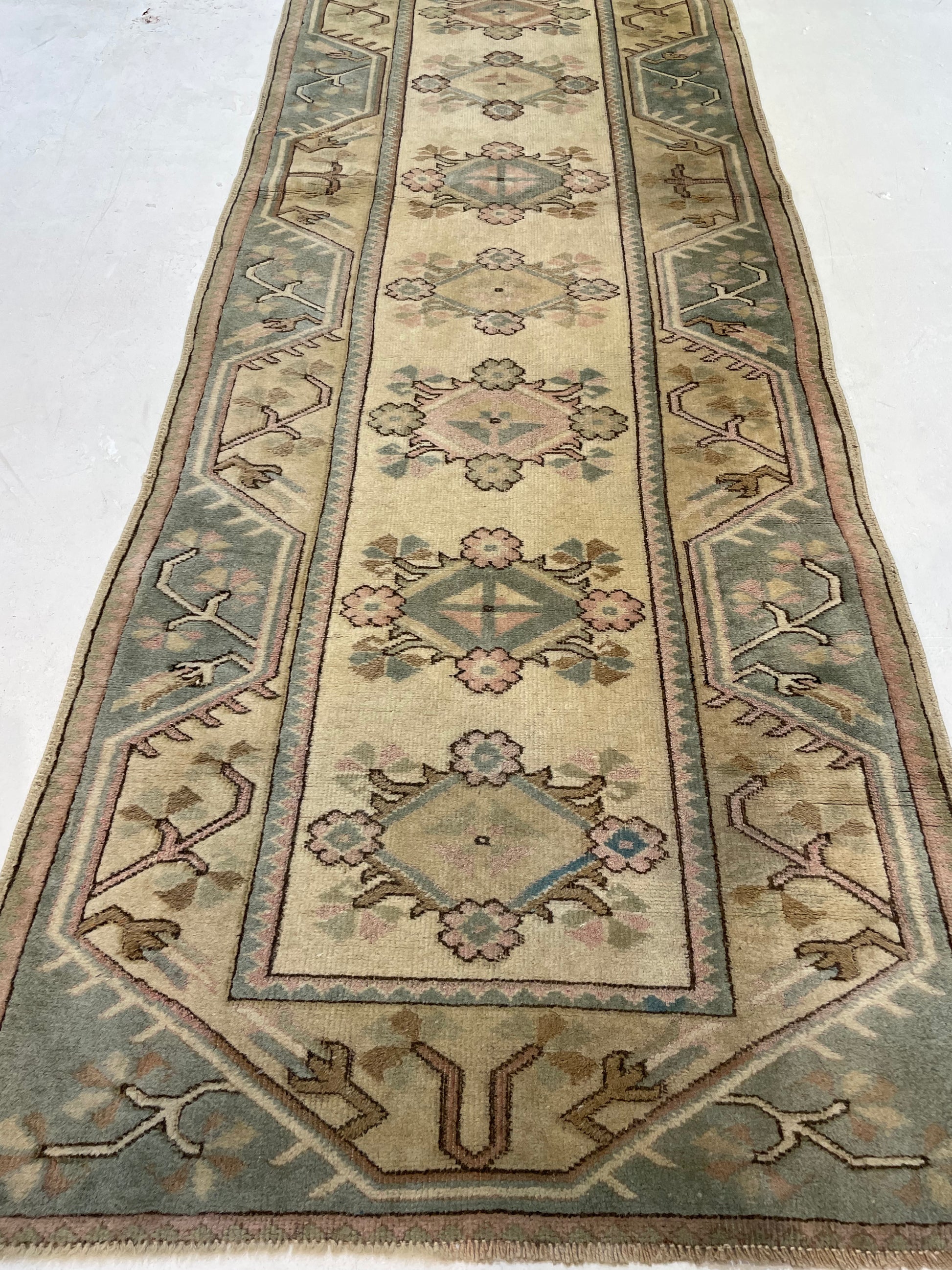 Hand-Knotted Wool Runner Turkish Oushak 2'8" x 8'10"