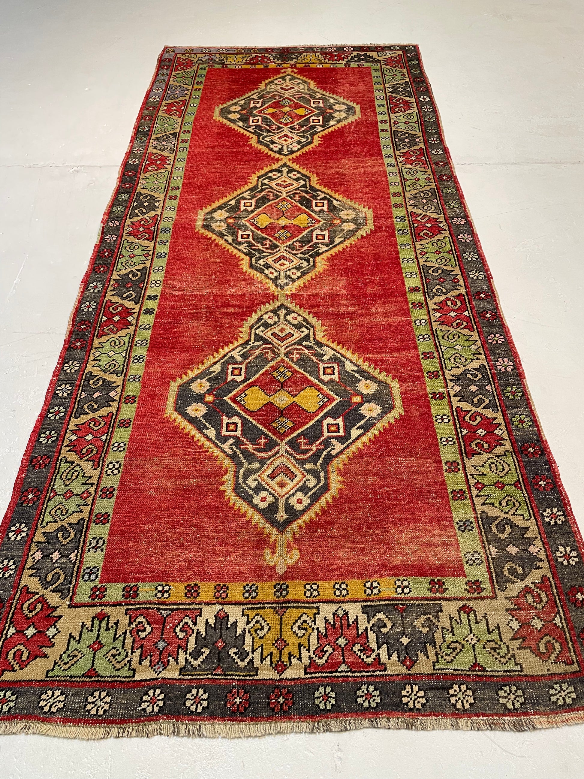 Hand-Knotted Wool Runner Turkish Oushak 4'5" x 10'4"