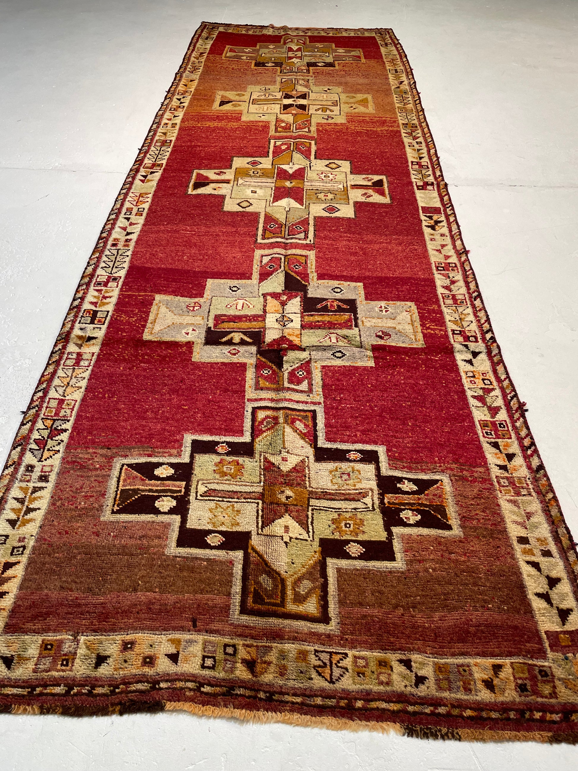 Hand-Knotted Wool Runner Turkish Oushak 4'8" x 13'11"